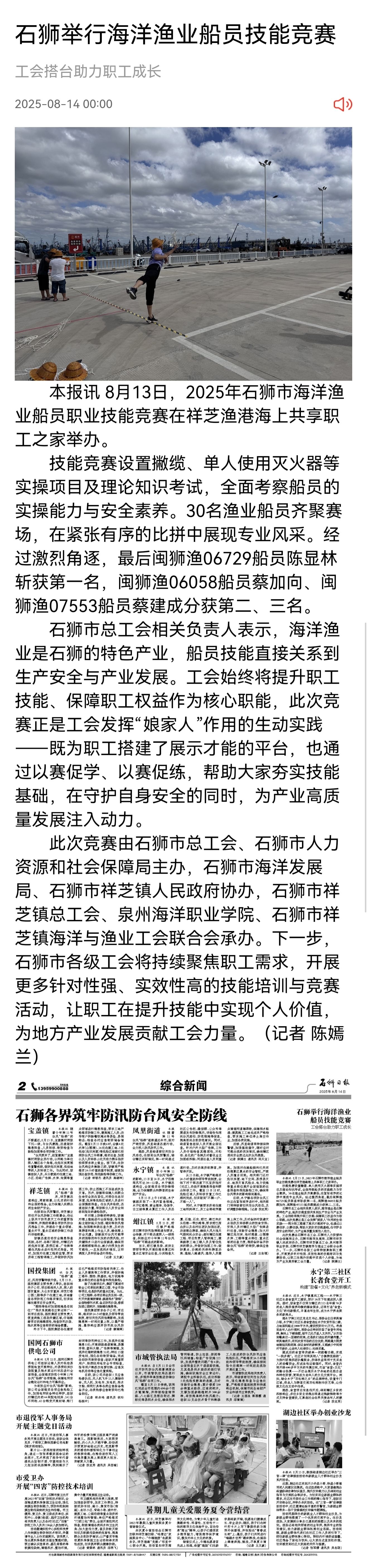 【石狮日报】石狮举行海洋渔业船员技能竞赛
