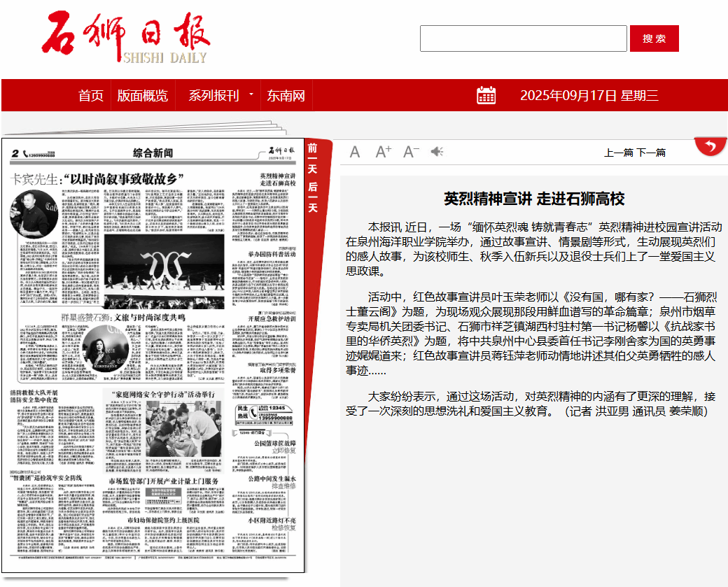 【石狮日报】英烈精神宣讲走进石狮高校