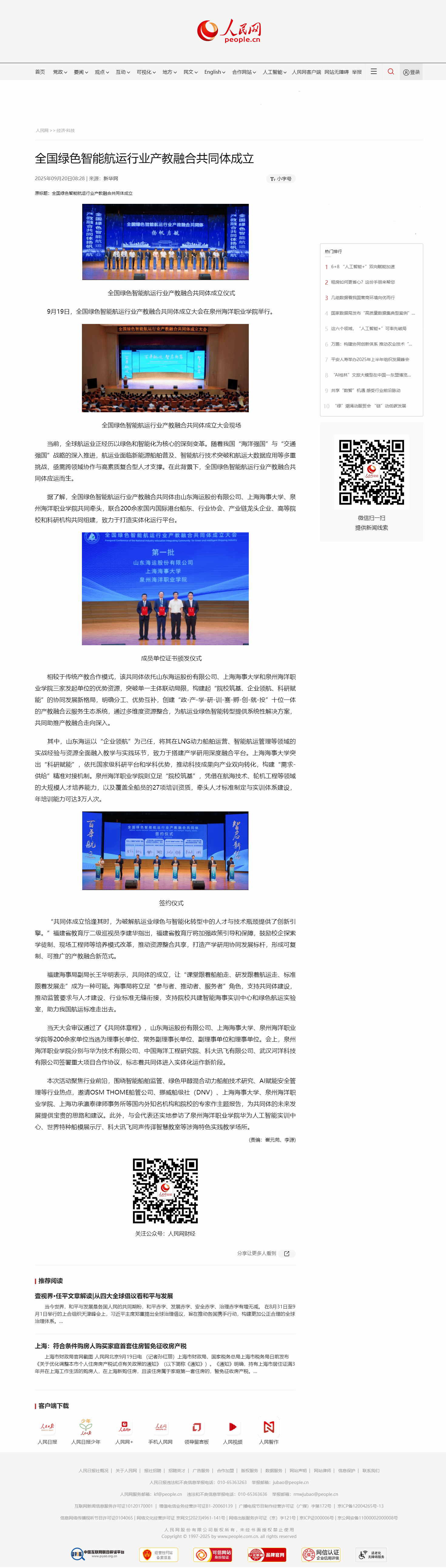 【人民网】全国绿色智能航运行业产教融合共同体成立
