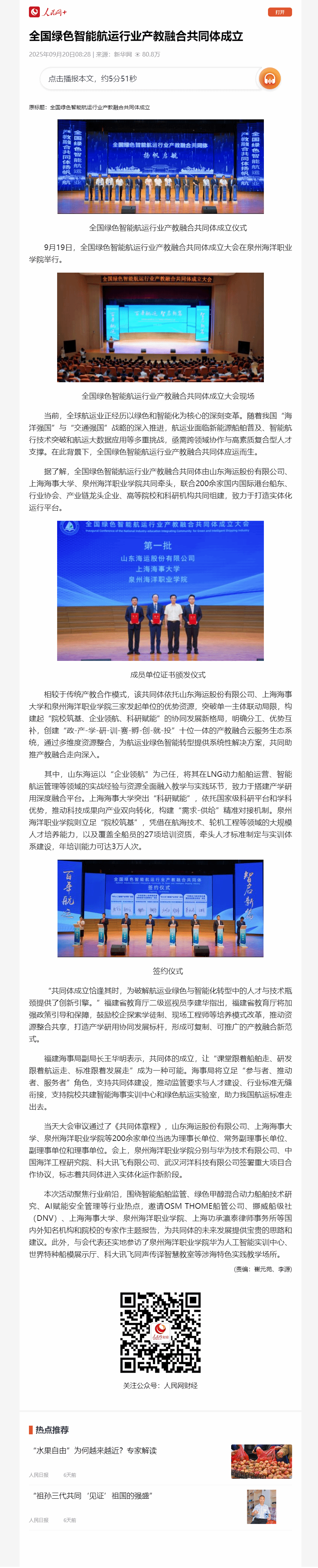 【人民网】全国绿色智能航运行业产教融合共同体成立