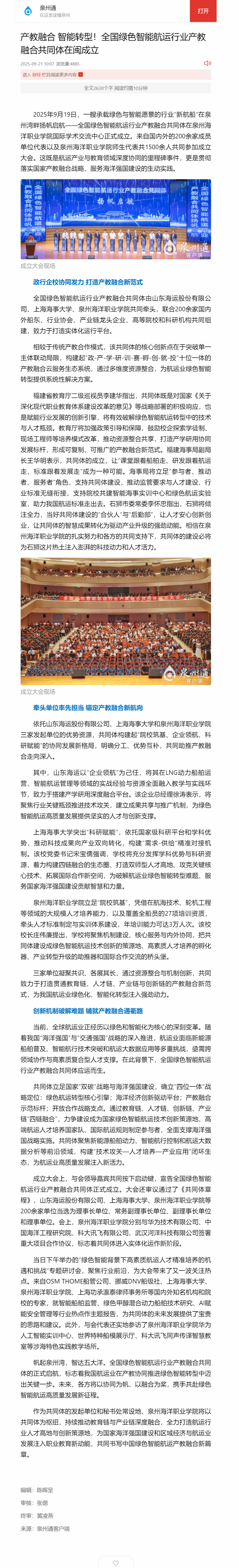 【泉州通客户端】产教融合 智能转型!全国绿色智能航运行业产教融合共同体在闽成立