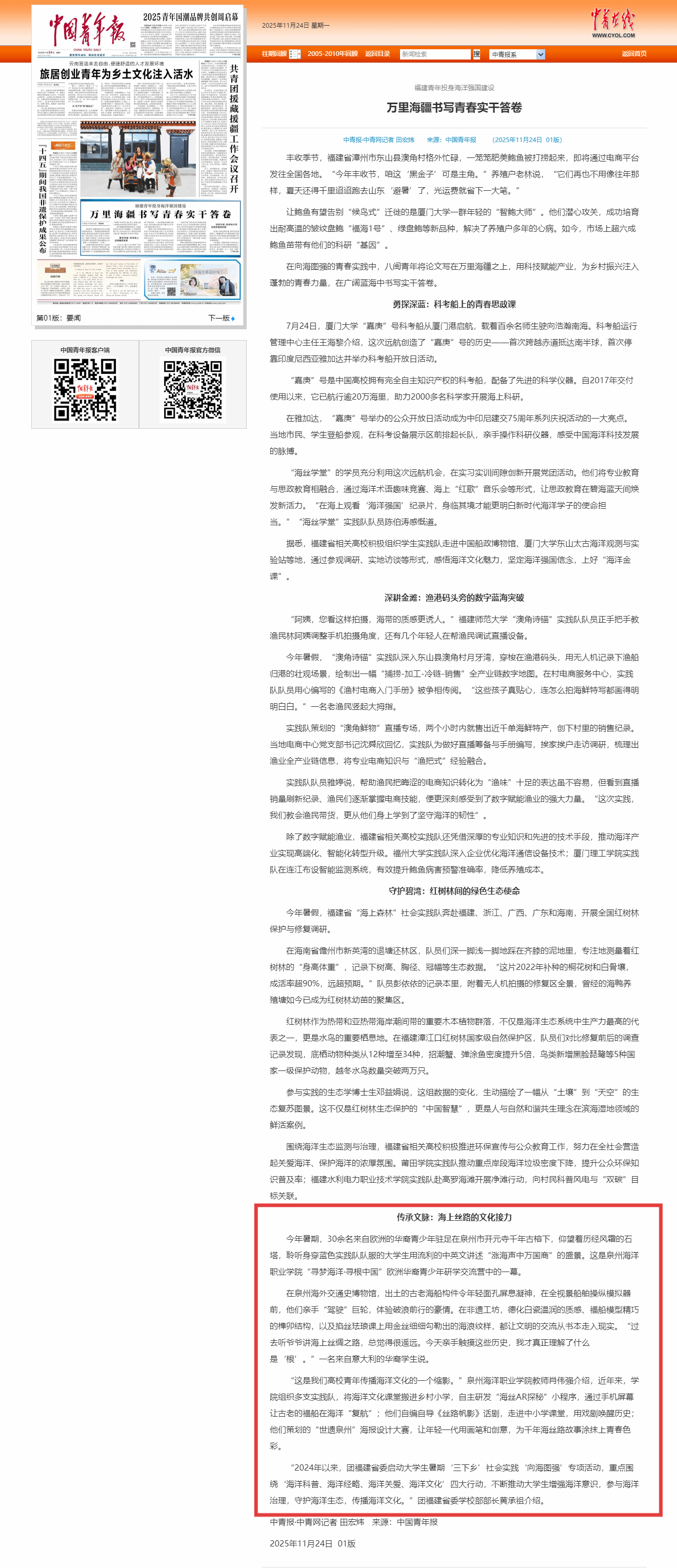 【中国青年报】福建青年投身海洋强国建设 万里海疆书写青春实干答卷