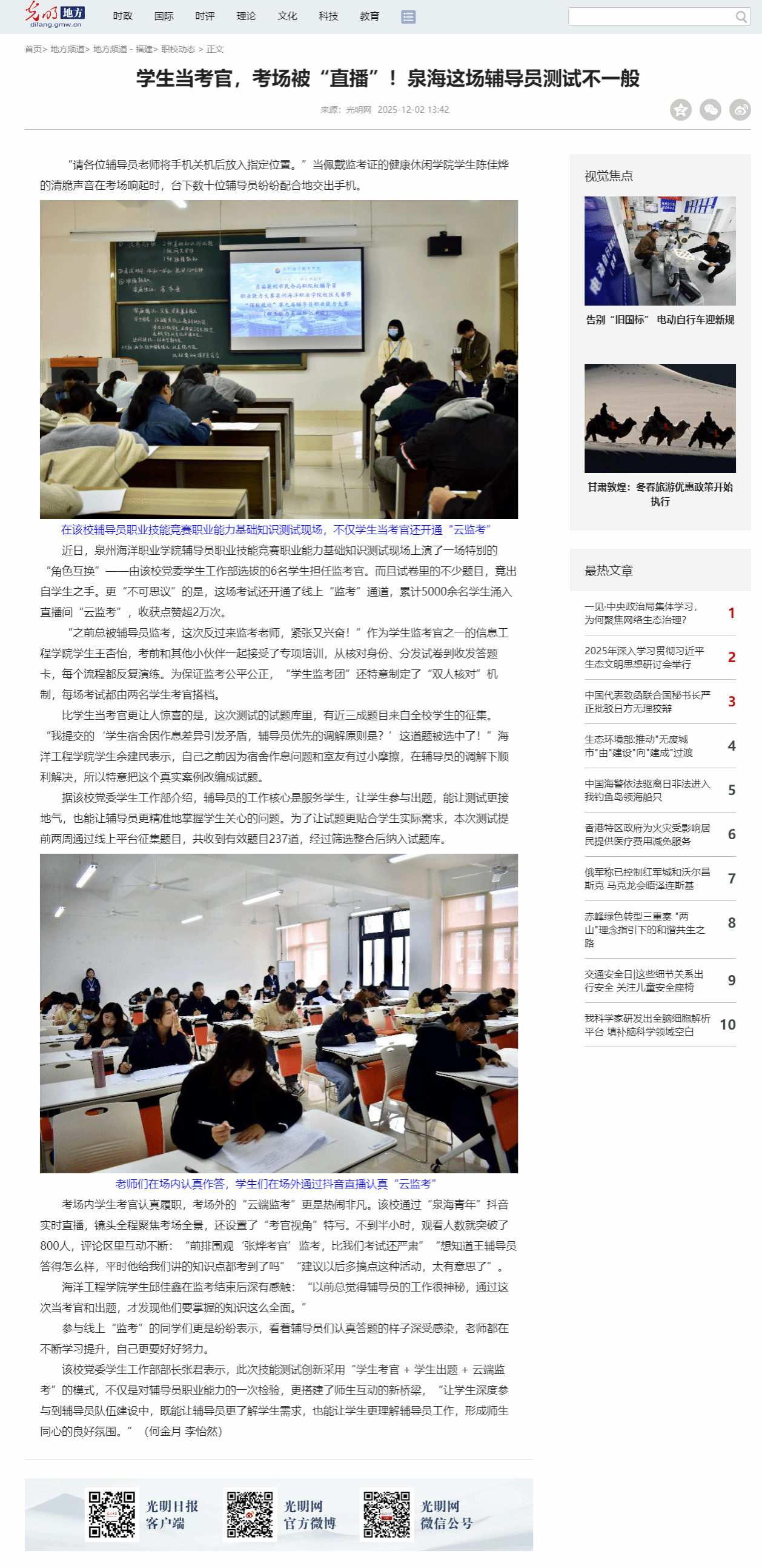 【光明网】学生当考官,考场被“直播”!泉海这场辅导员测试不一般
