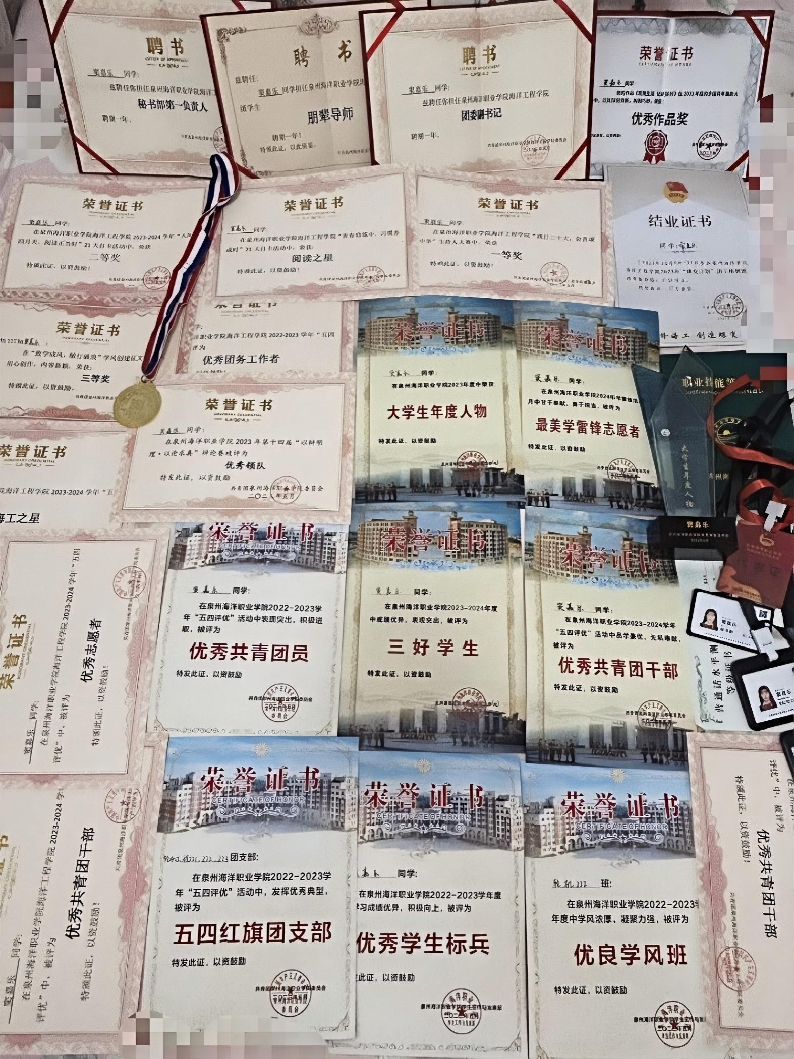 2024年5月获得泉州海洋职业学院“优秀共青团干部”荣誉称号;