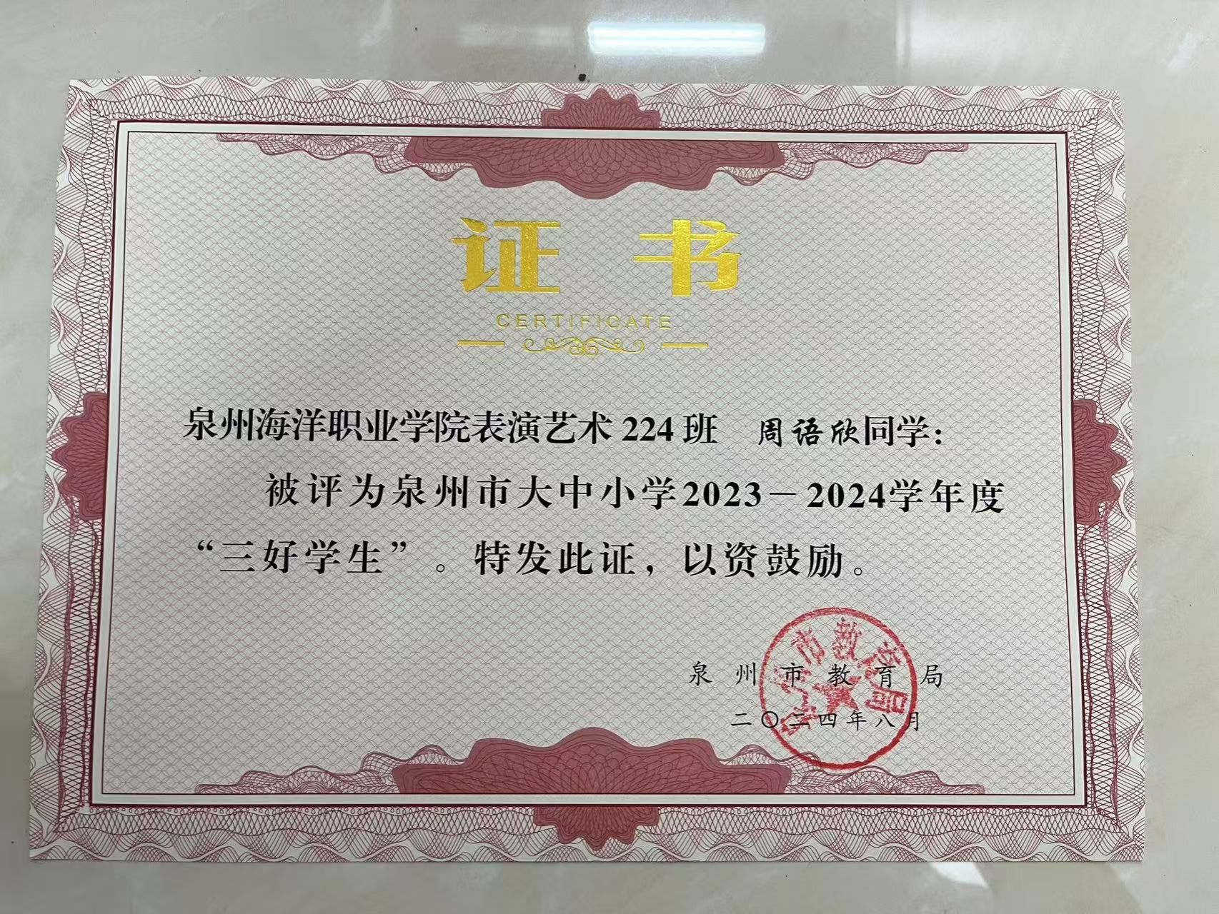 2023-2024学年 泉州海洋职业学院“三好学生”