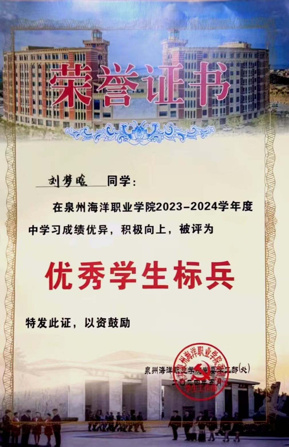 6、2023-2024学年泉州海洋职业学院“优秀学生标兵”