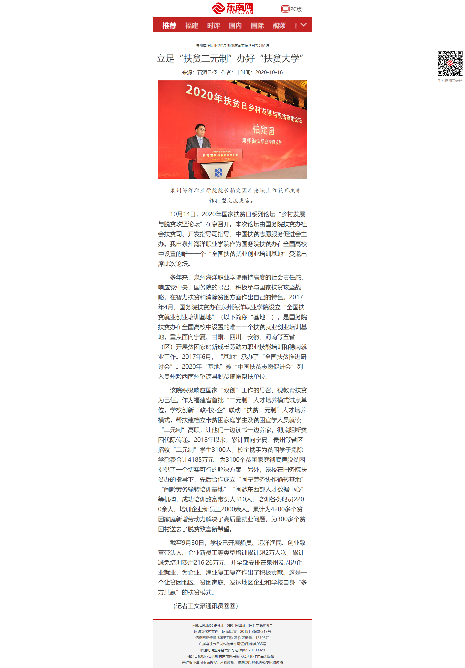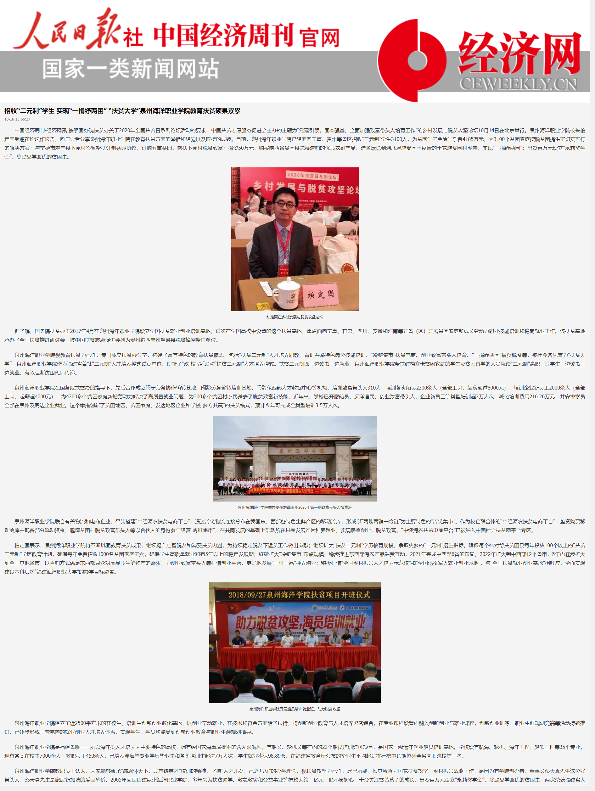 泉州海洋职业学院受邀出席国家扶贫日系列论坛-立足“扶贫二元制”办好“扶贫大学”