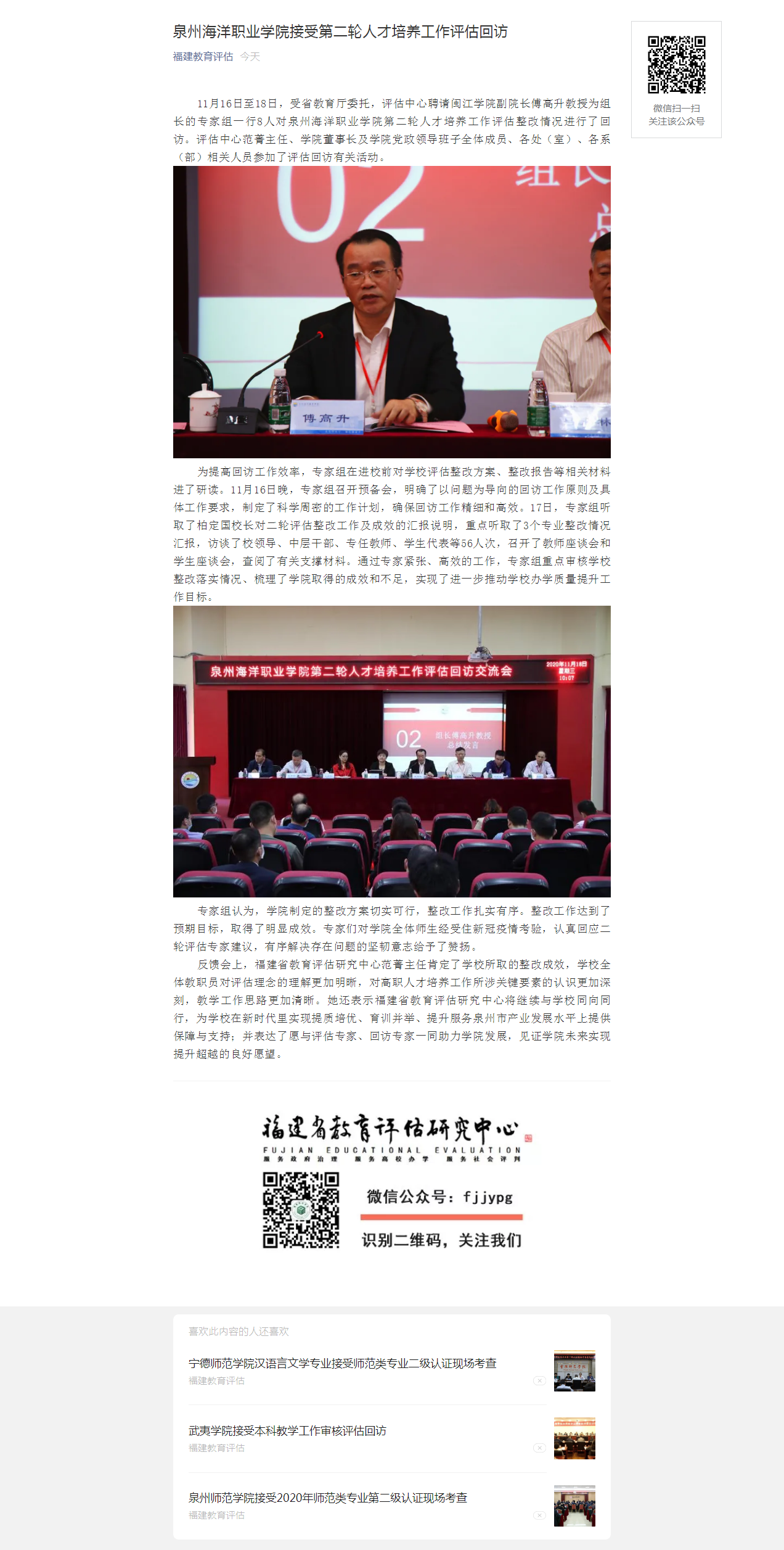 【福建教育评估】泉州海洋职业学院接受第二轮人才培养工作评估回访