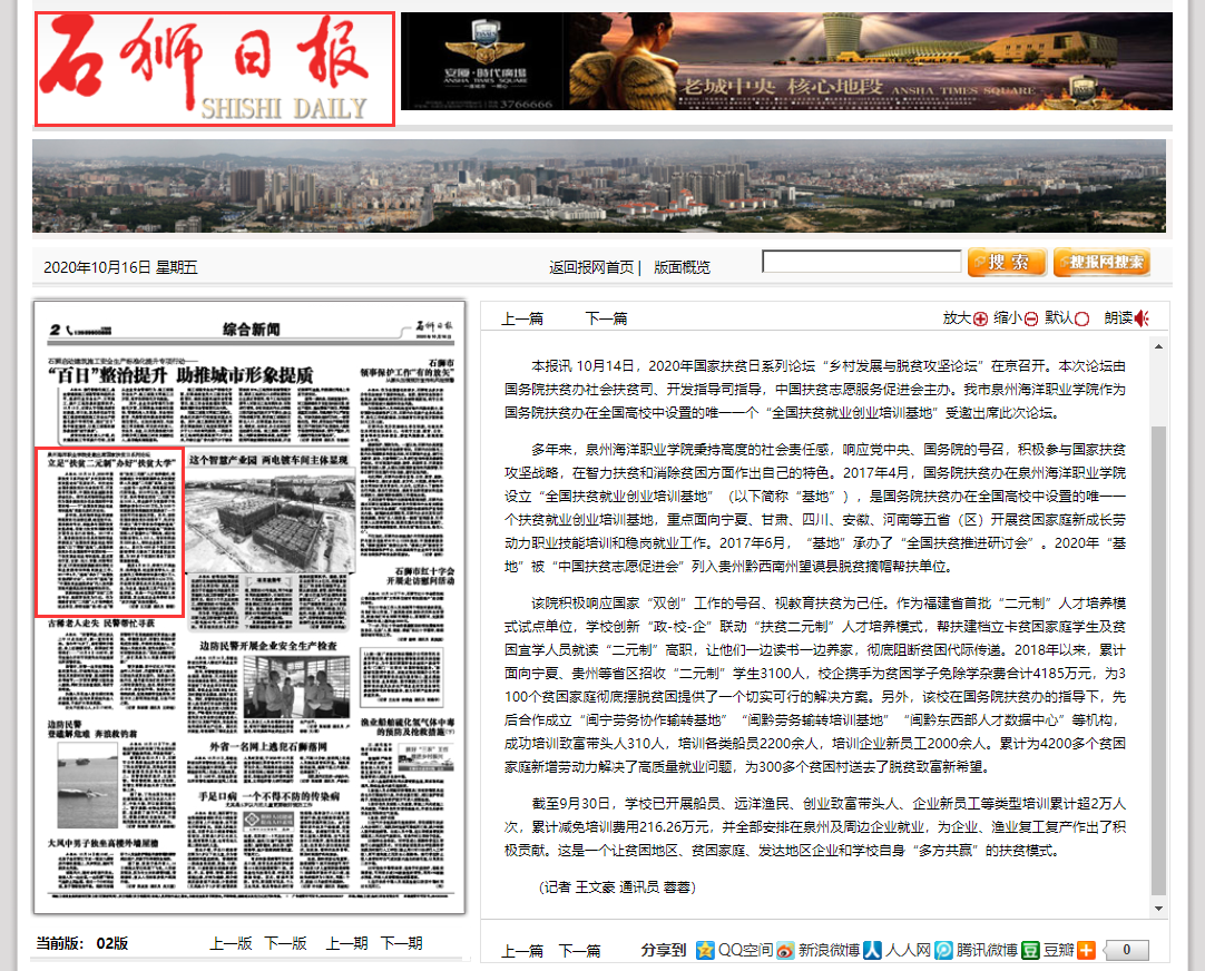 【石狮日报】立足“扶贫二元制”办好“扶贫大学”