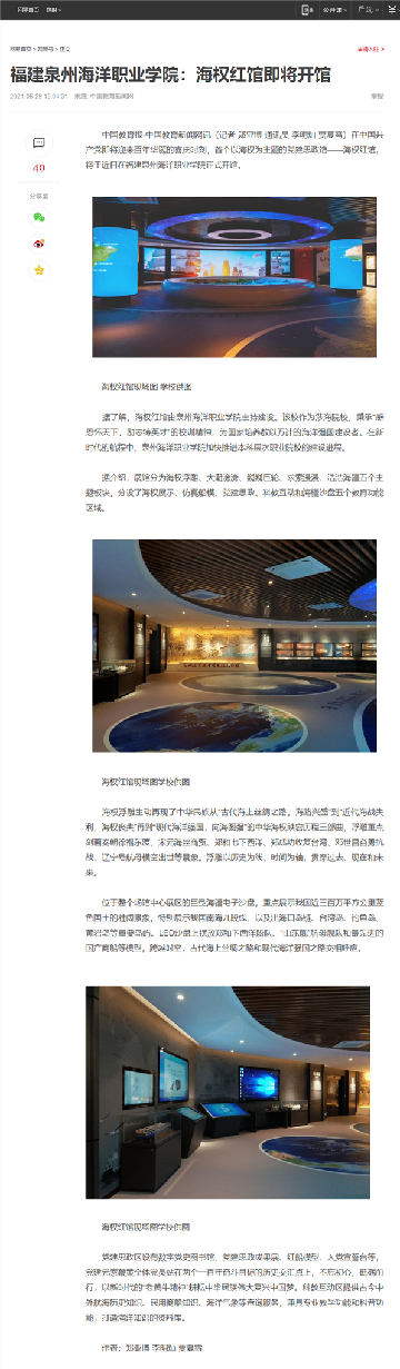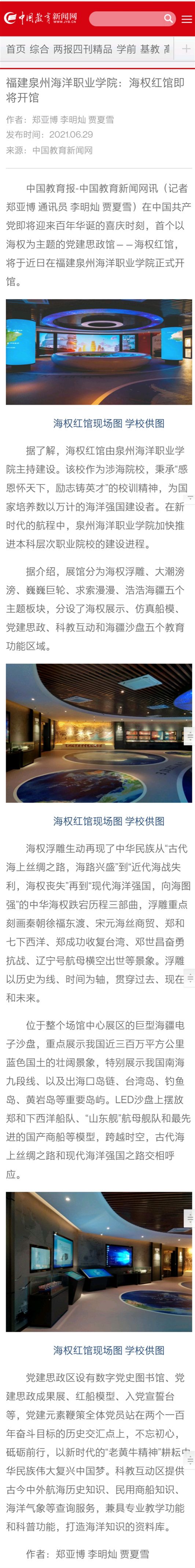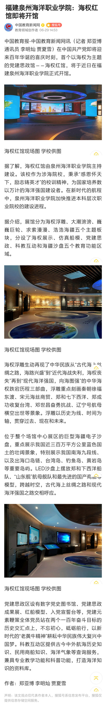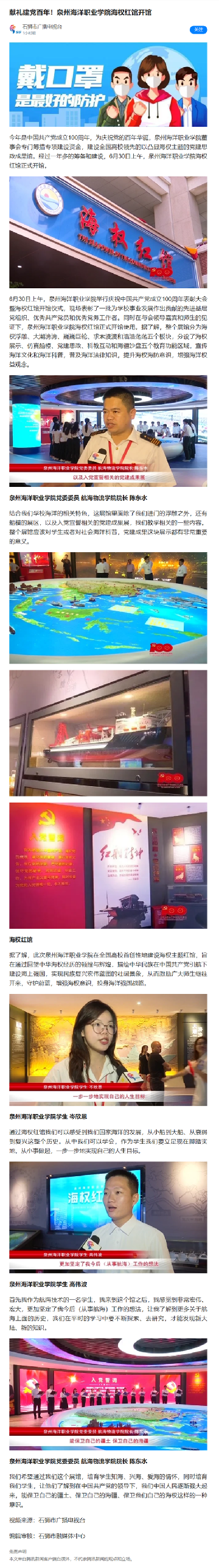听说泉州海洋职业学院建设了国内首个高校内的海权红馆,并于6月29日正式开馆,同时举行了表彰大会。当日,记者前往一探究竟。走进海权红馆,一股现代化与历史感交融的气息扑面而来。精雕细琢的浮雕映入眼帘,数十艘历...