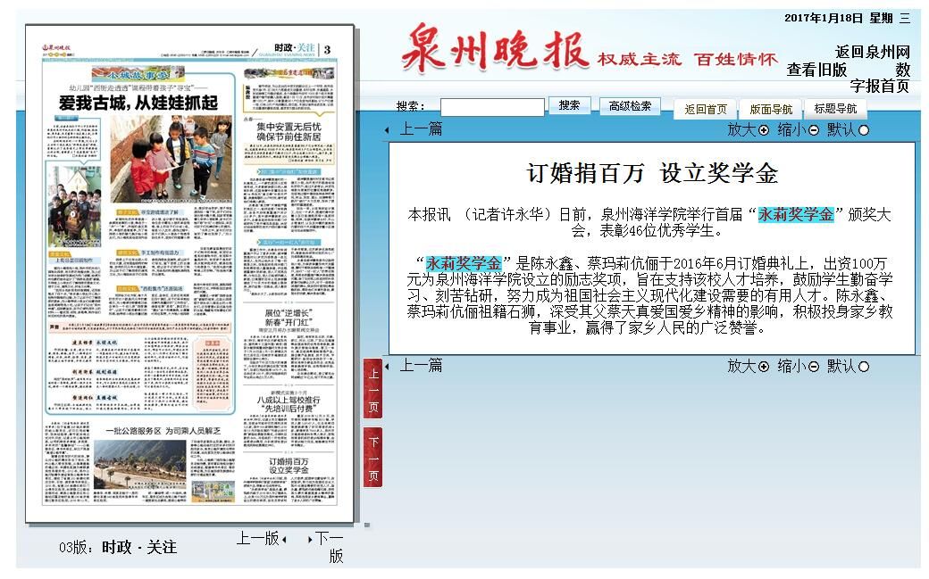 泉州晚报讯:
