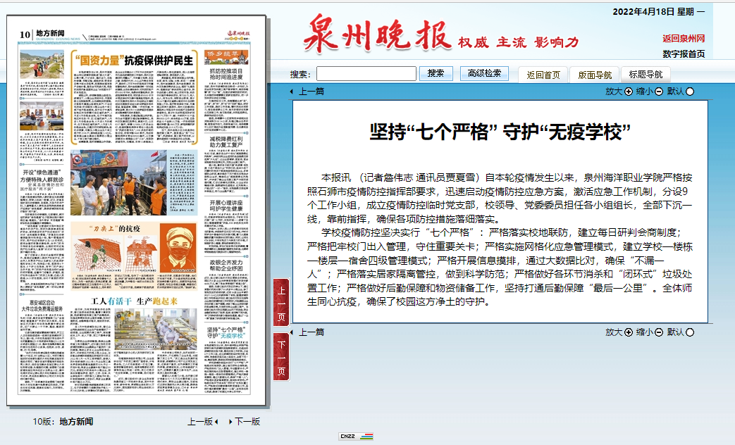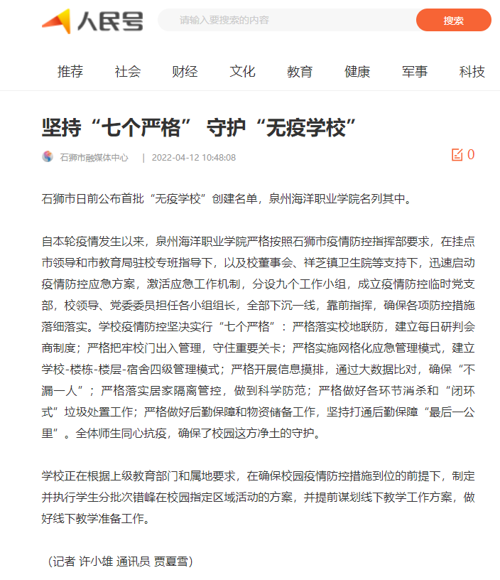 【泉州晚报】坚持“七个严格” 守护“无疫学校”