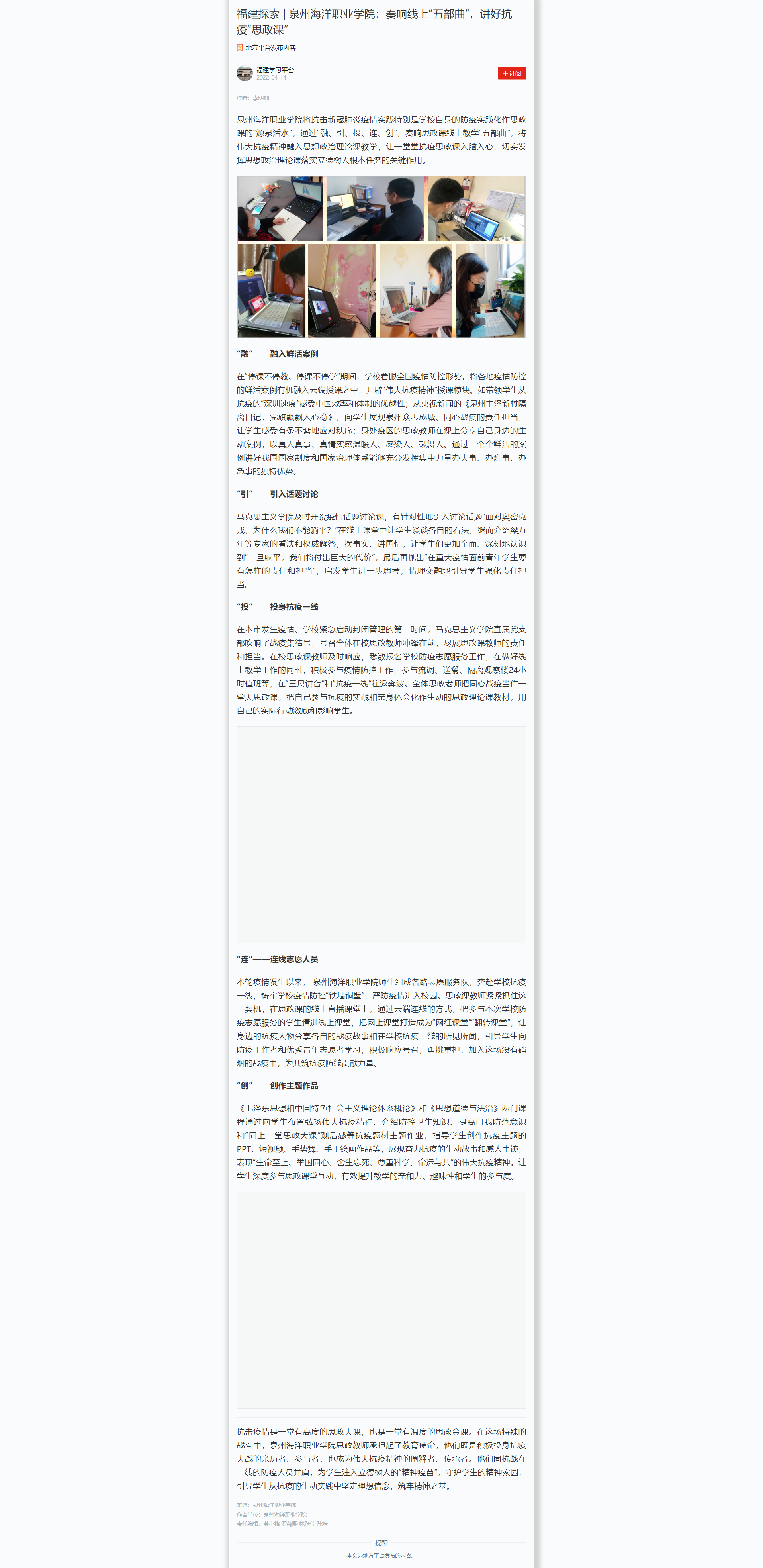 【学习强国】泉州海洋职业学院:奏响线上“五部曲”,讲好抗疫“思政课”
