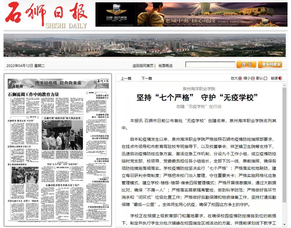 【石狮日报】坚持“七个严格” 守护“无疫校园”