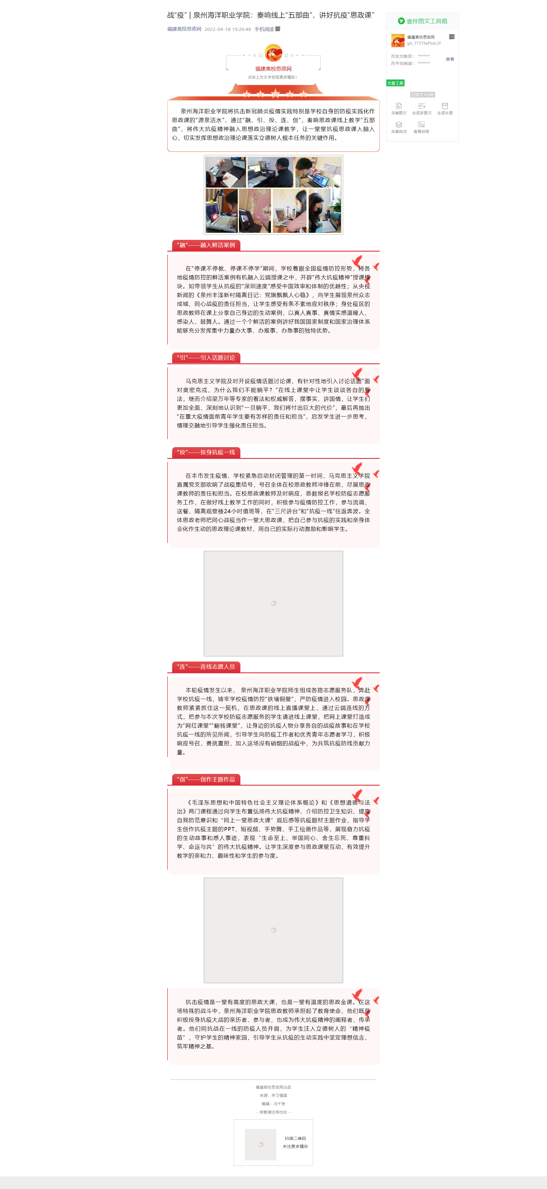 【福建高校思政网】战“疫”丨泉州海洋职业学院:奏响线上“五部曲”,讲好抗疫“思政课”