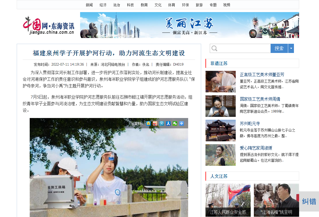 【中国网·东海资讯】福建泉州学子开展护河行动,助力河流生态文明建设