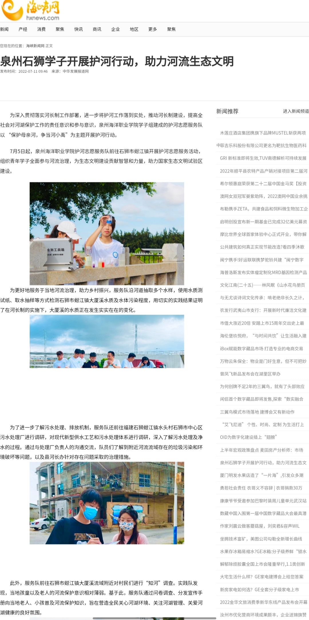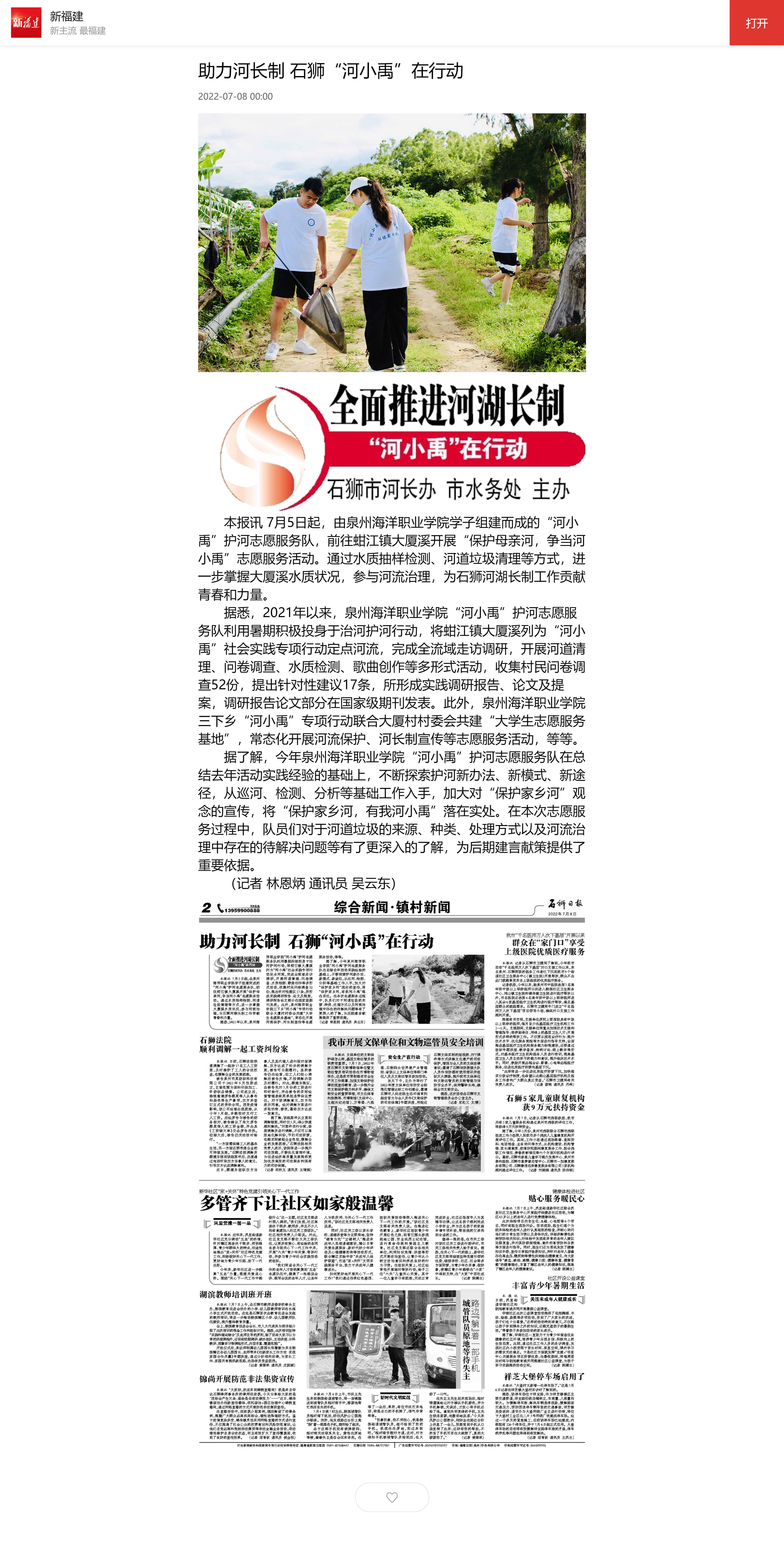 【海峡网】泉州石狮学子开展护河行动,助力河流生态文明