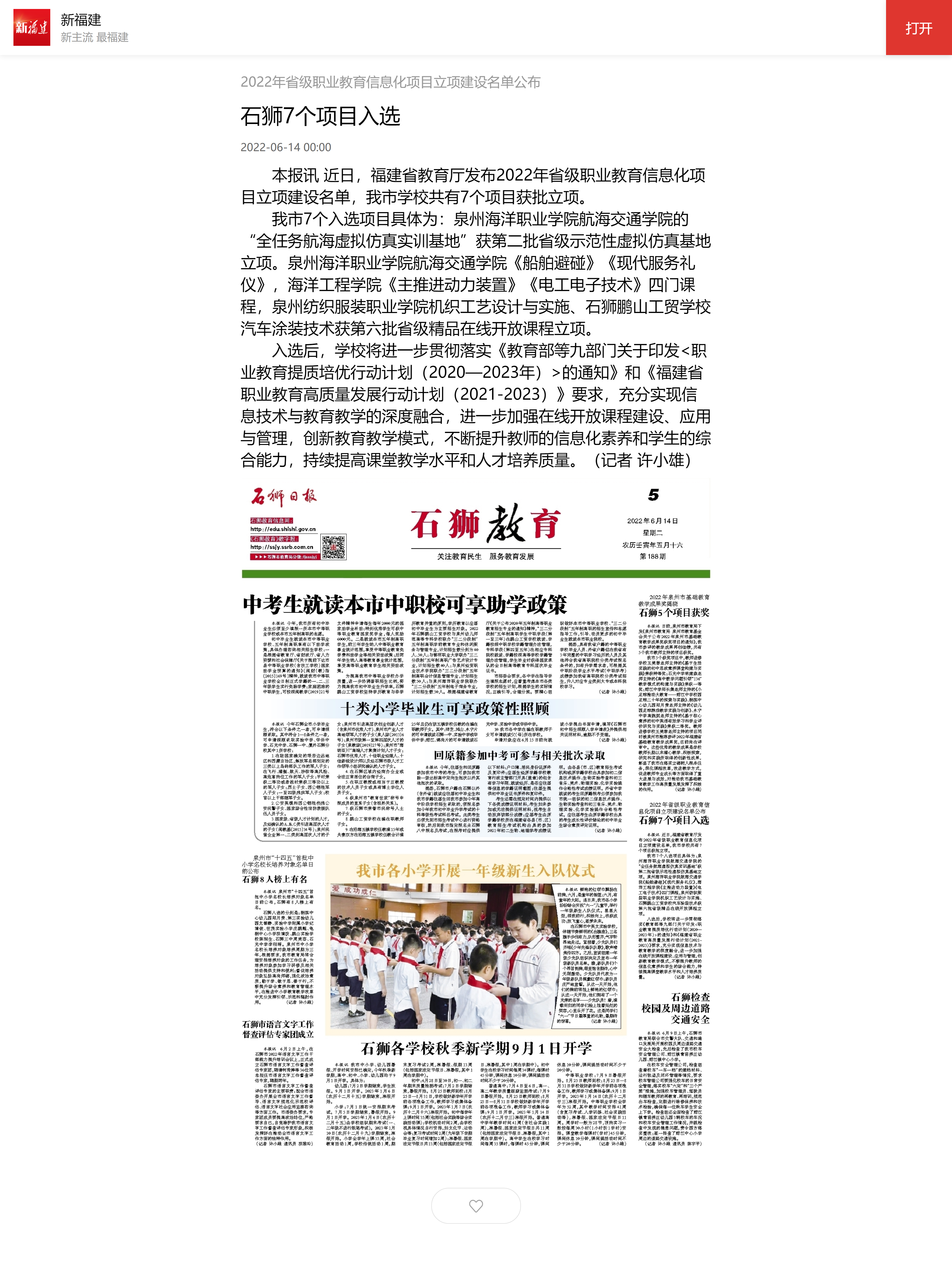 【新福建】全国“职业院校服务全民终身学习”项目第一批实验校公布 泉州海洋职业学院入选