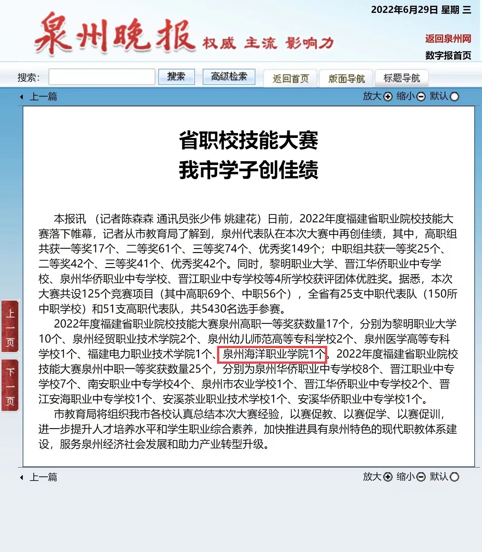 【泉州晚报】省职校技能大赛 我市学子创佳绩