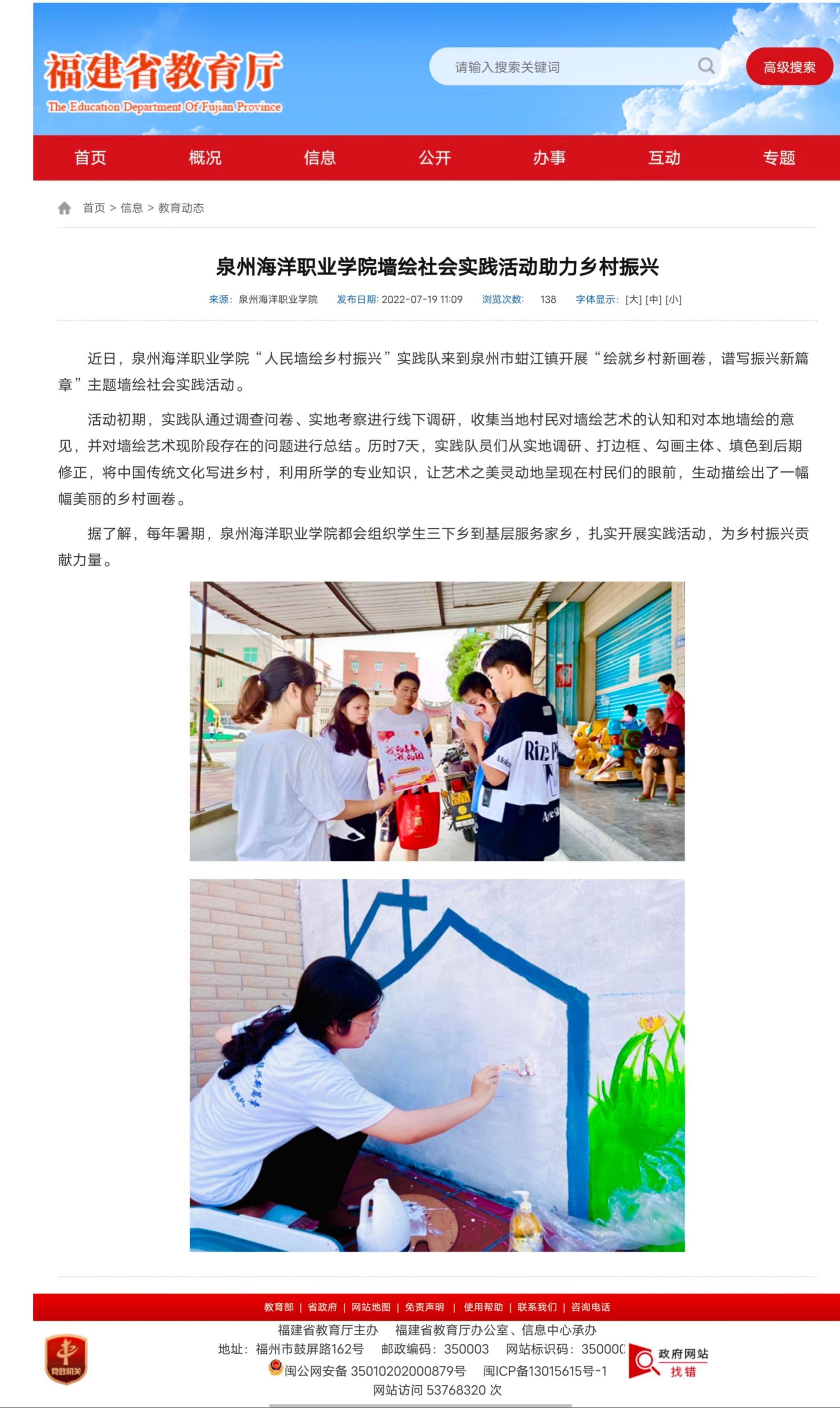 【福建省教育厅】泉州海洋职业学院开展助力乡村振兴社会实践墙绘活动