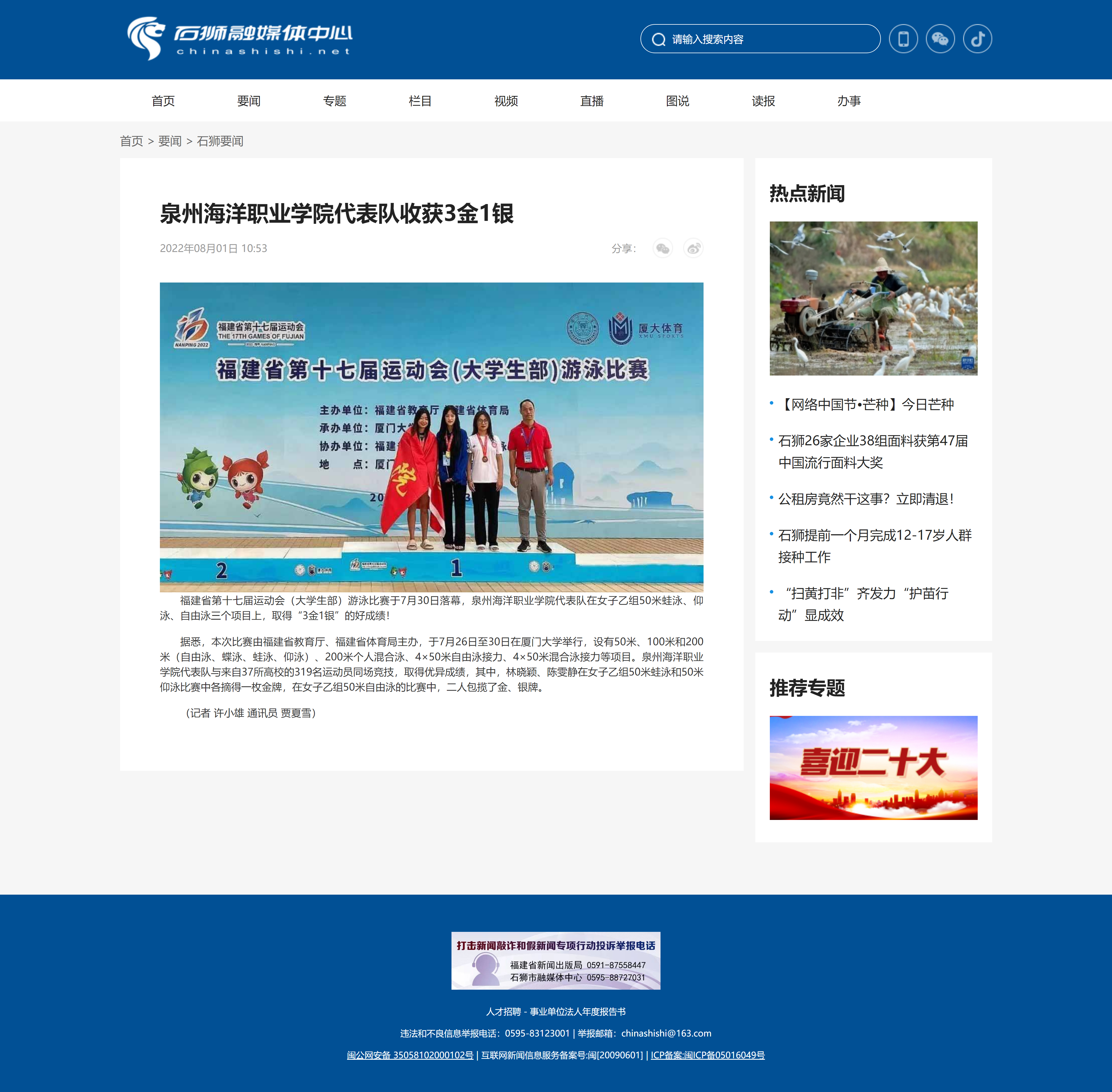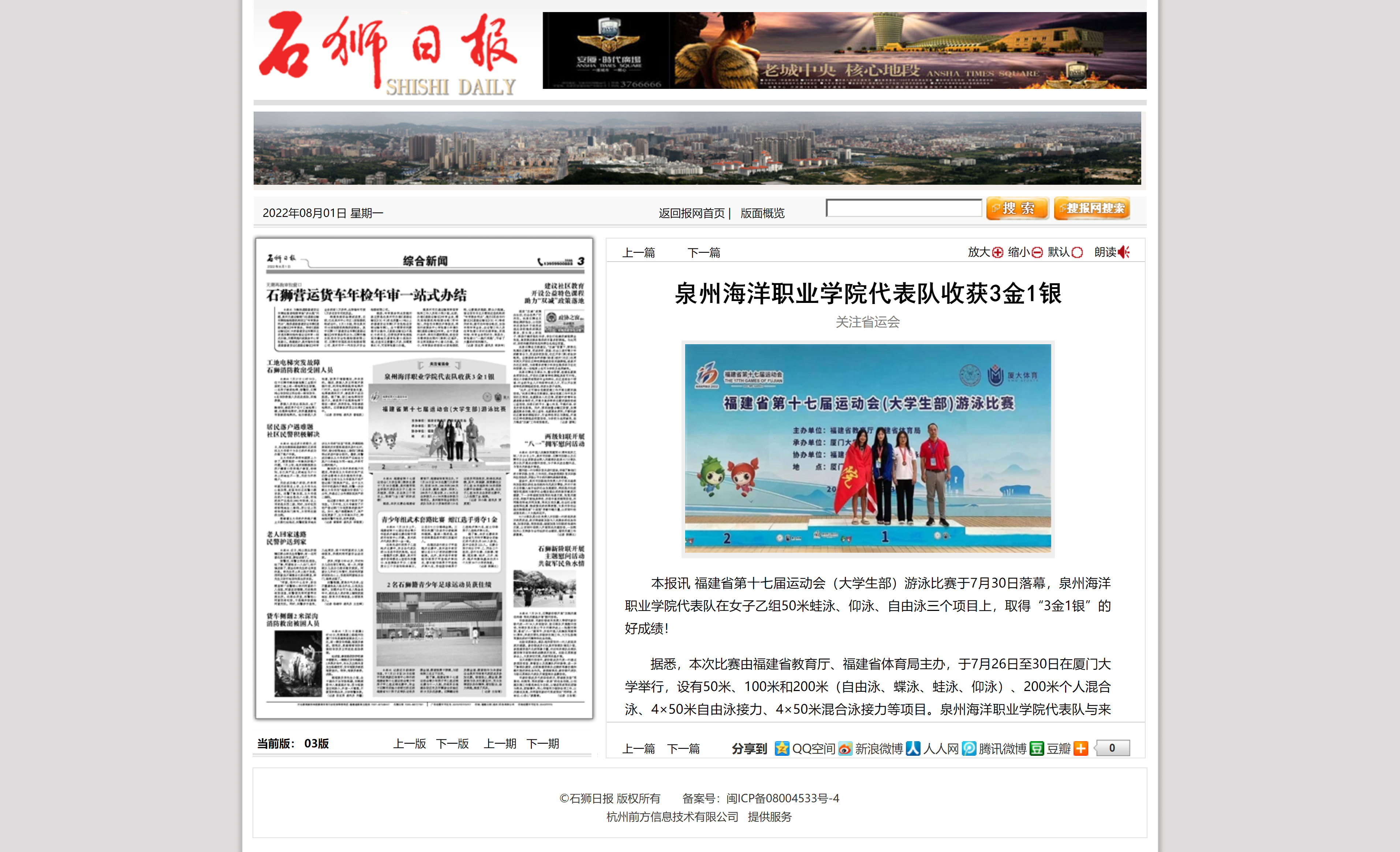 【石狮日报】泉州海洋职业学院代表队收获3金1银