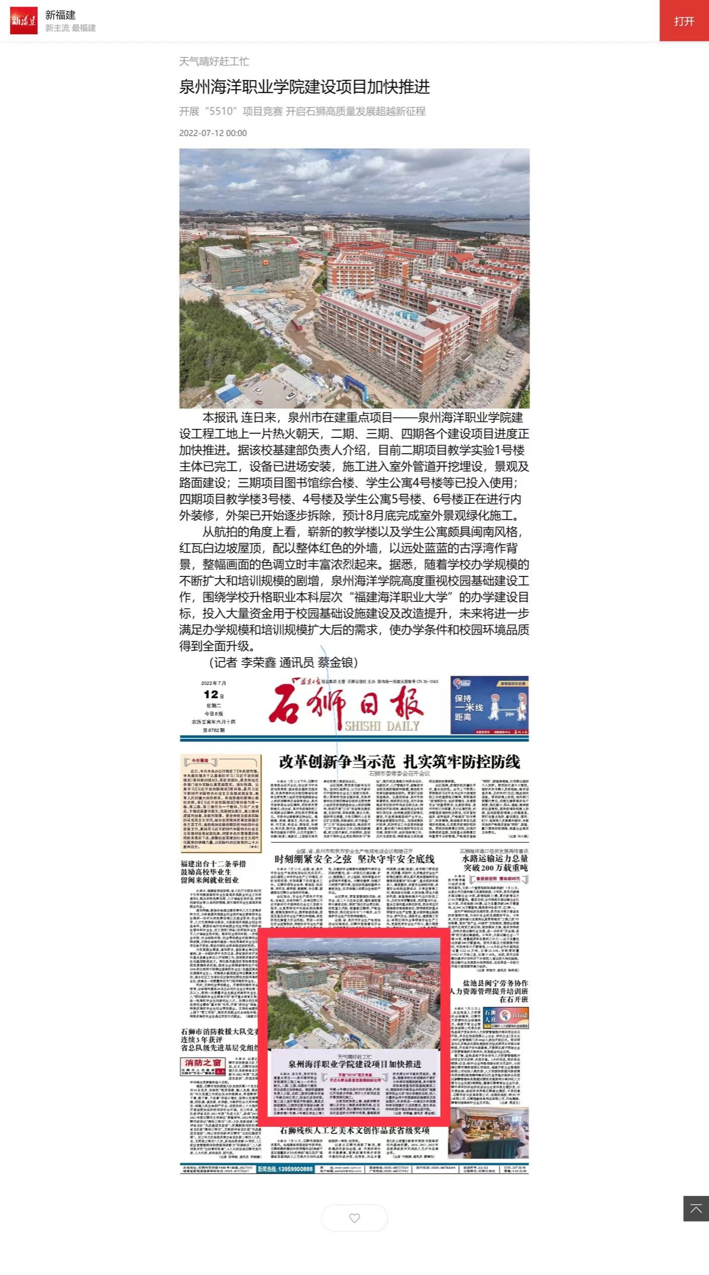 【石狮日报】泉州海洋职业学院 通过附加审核