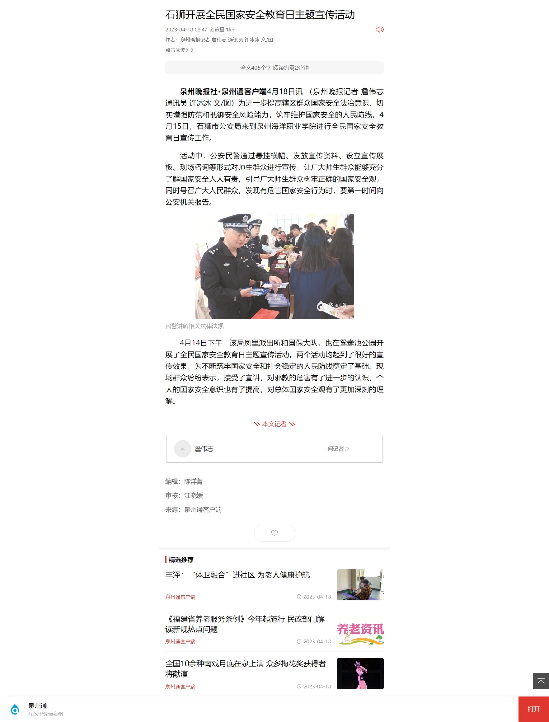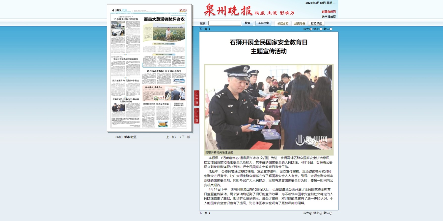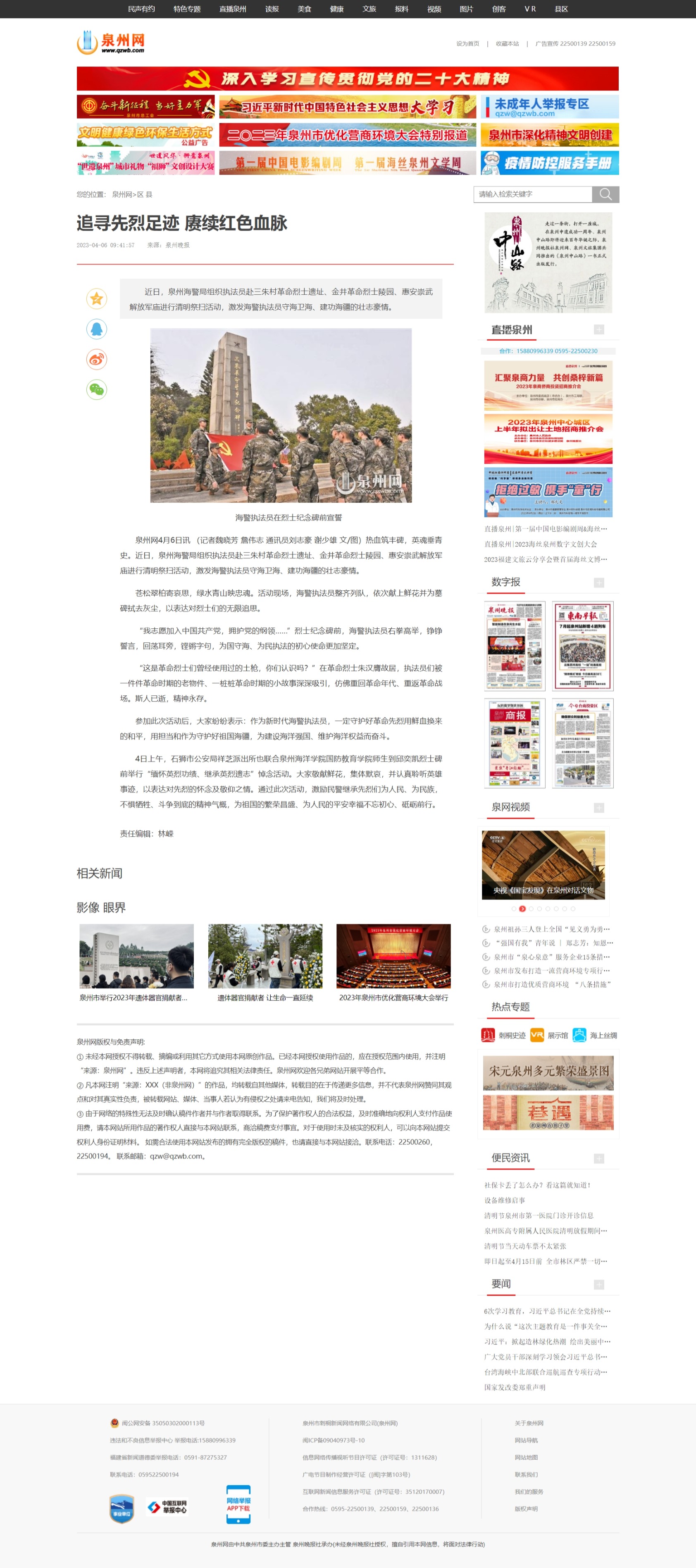 4日上午,石狮市公安局祥芝派出所也联合泉州海洋学院国防教育学院师生到邱奕凯烈士碑前举行“缅怀英烈功绩、继承英烈遗志”悼念活动。大家敬献鲜花,集体默哀,并认真聆听英雄事迹,以表达对先烈的怀念及敬仰之情。通...