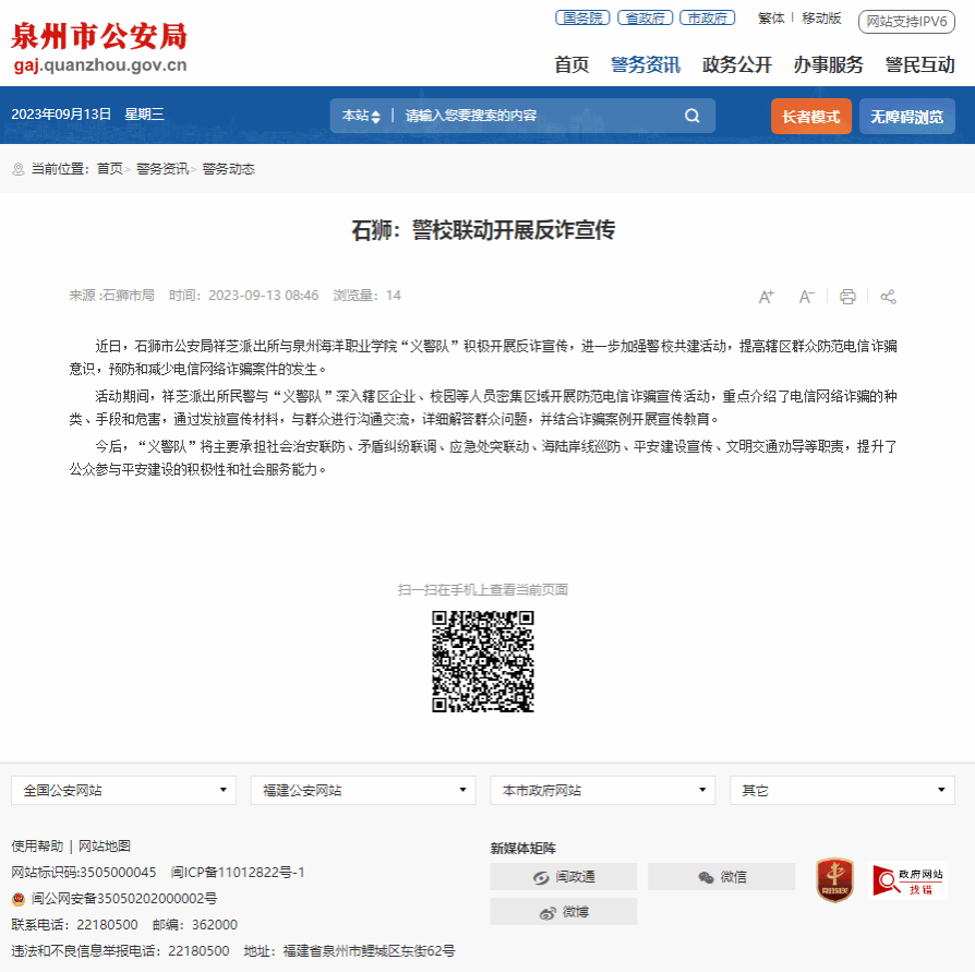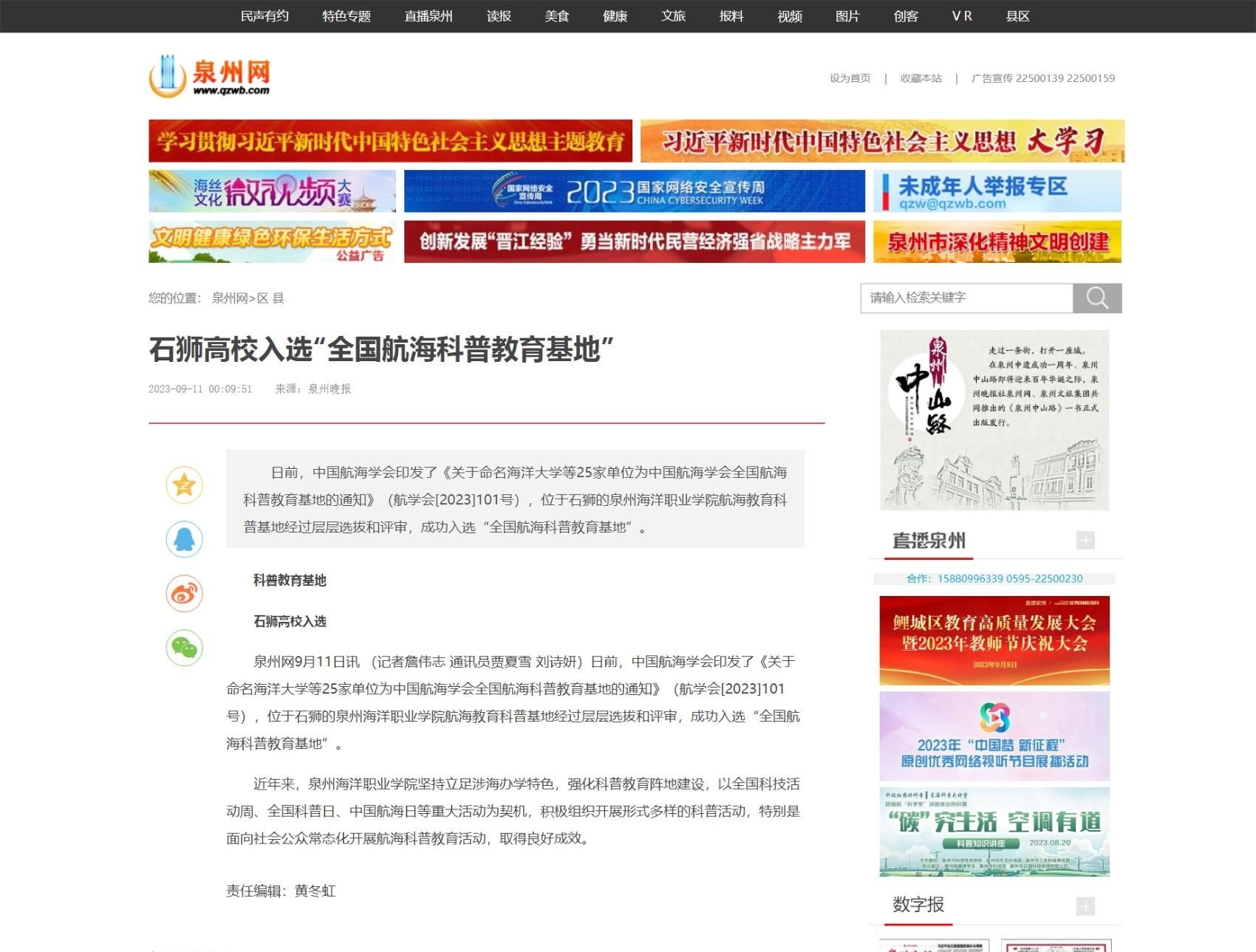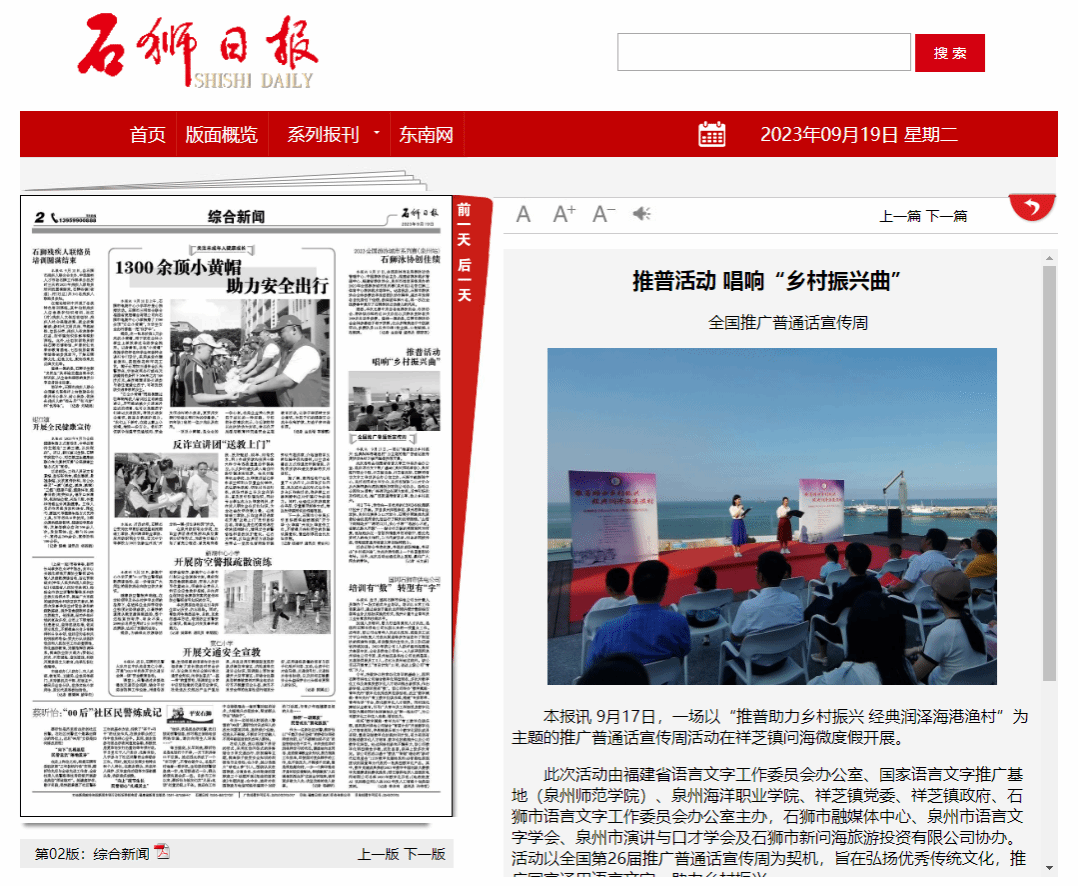 9月11日至17日系第26届全国推广普通话宣传周,17日,省语委办、泉州师院国家语言文字推广基地携手联盟单位泉州海洋职业学院,在石狮祥芝镇海边开展2023年“经典润乡土”活动。通过诗歌朗诵、现场书法、舞蹈表演等形式...