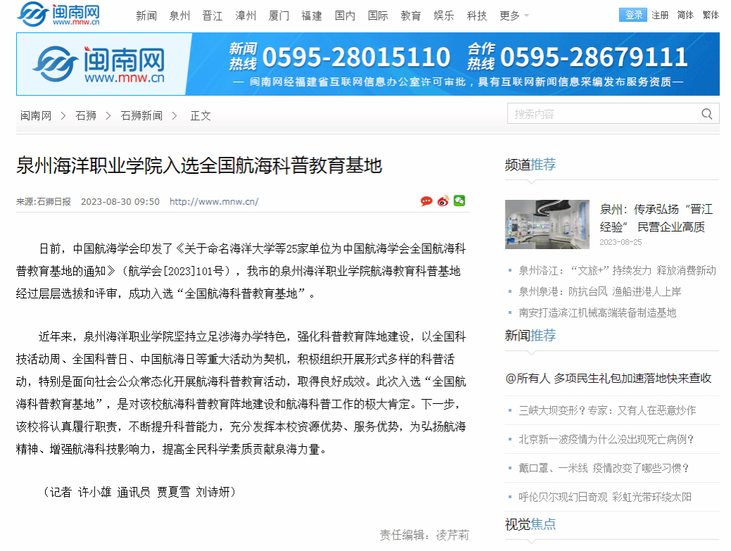 - 官方电话:0595-83015559 / 招生热线:0595-83858888