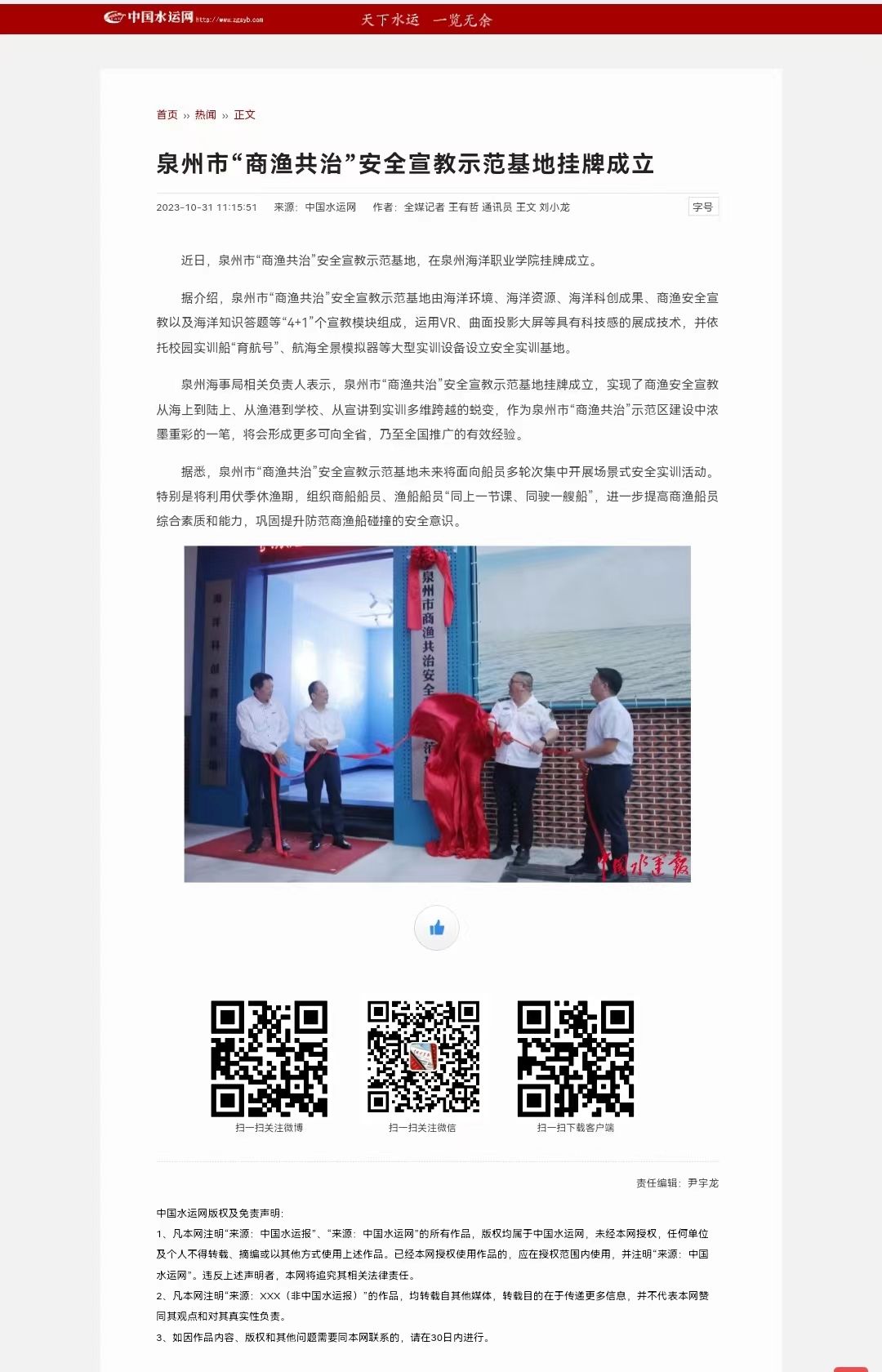 【中国水运网】泉州市“商渔共治”安全宣教示范基地挂牌成立