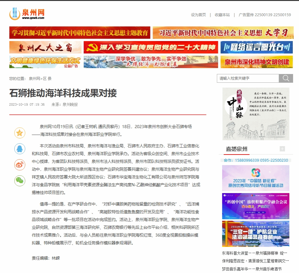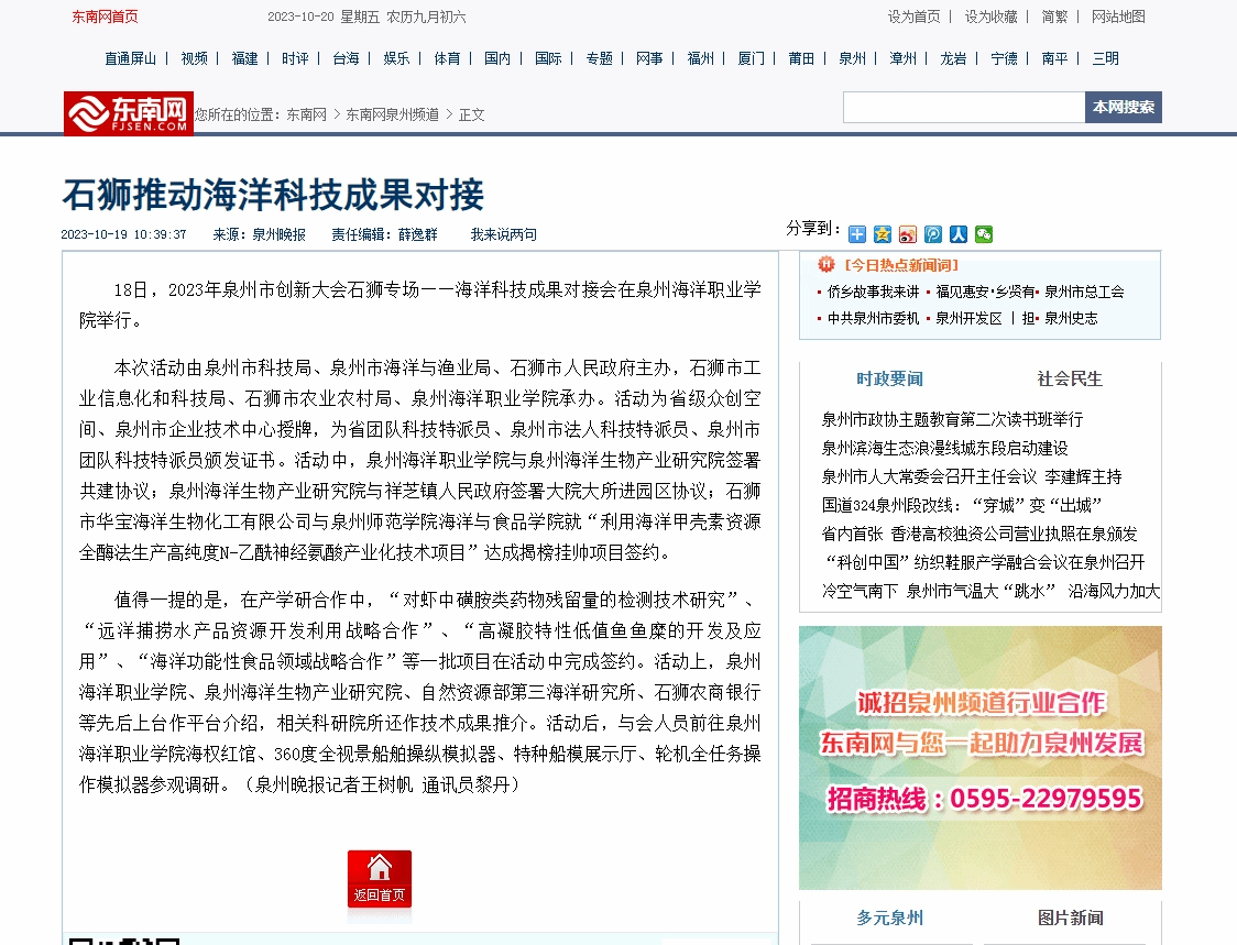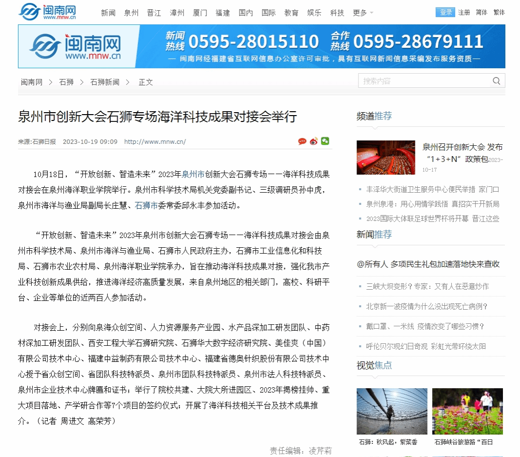 【菲律宾联合日报】石狮举行海洋科技成果对接会