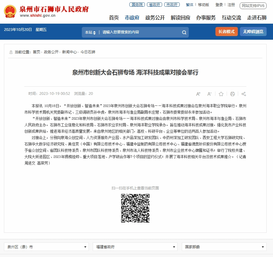 【泉州市石狮市人民政府】泉州市创新大会石狮专场 海洋科技成果对接会举行