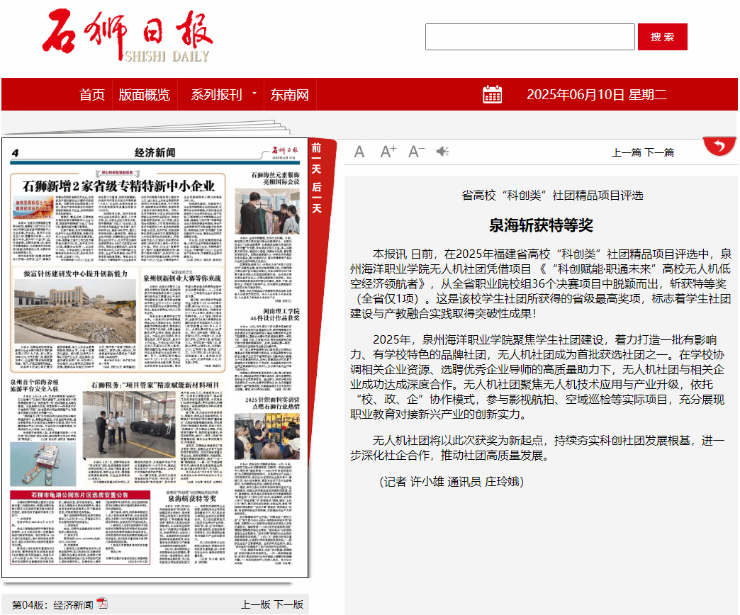 【石狮日报】省高校“科创类”社团精品项目评选 泉海斩获特等奖