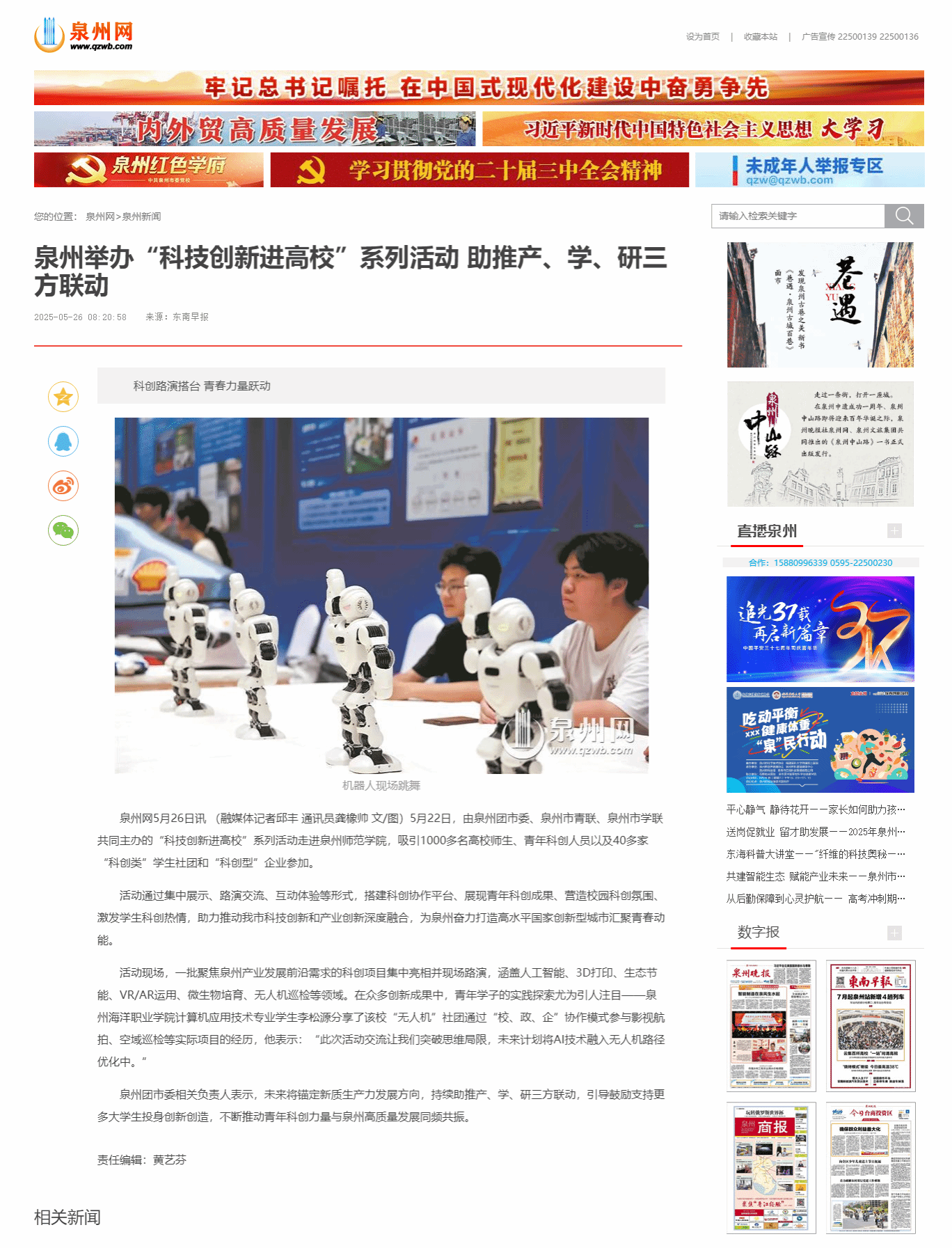 【泉州网】泉州举办“科技创新进高校”系列活动 助推产、学、研三方联动