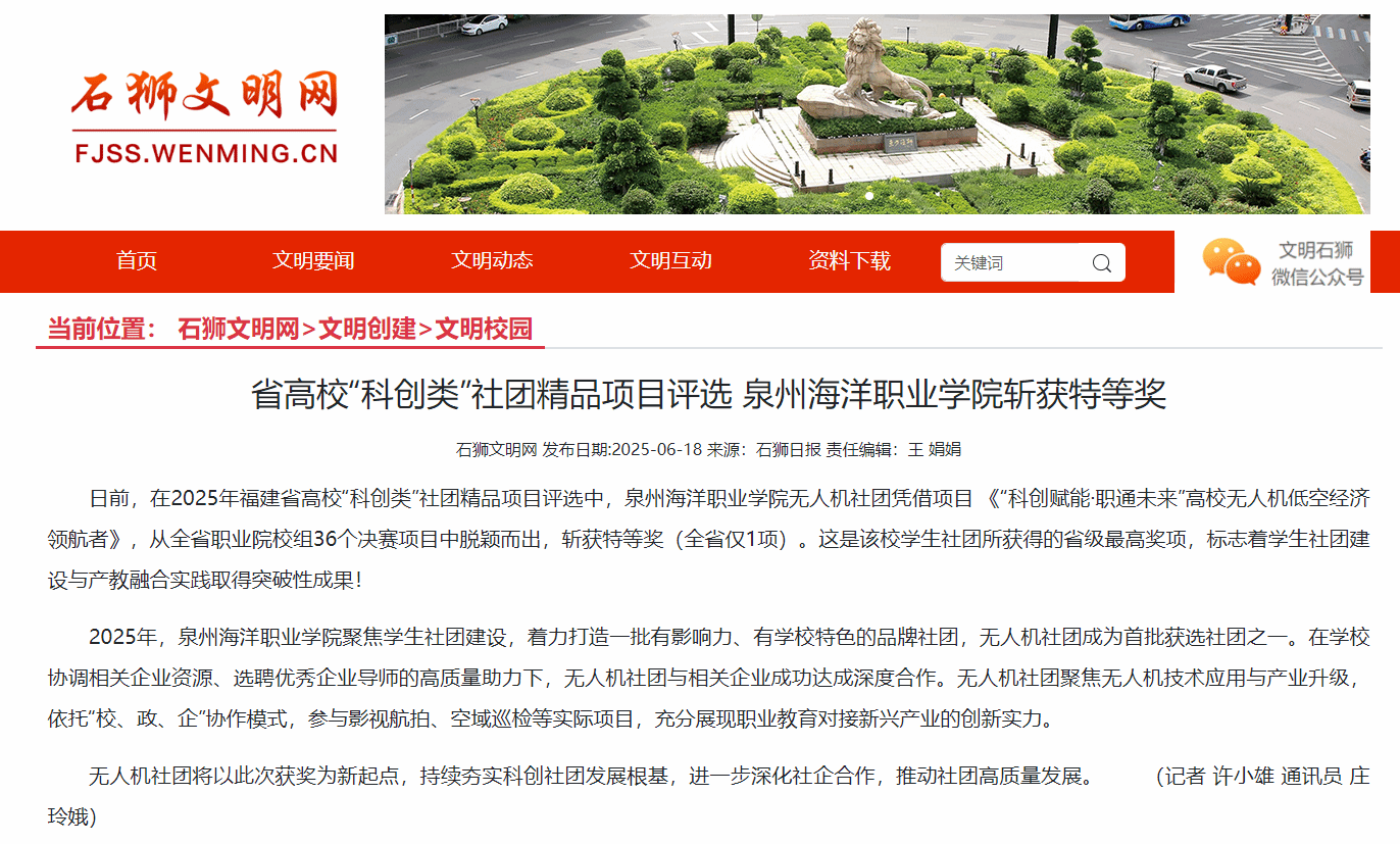 【石狮文明网】省高校“科创类”社团精品项目评选 泉州海洋职业学院斩获特等奖