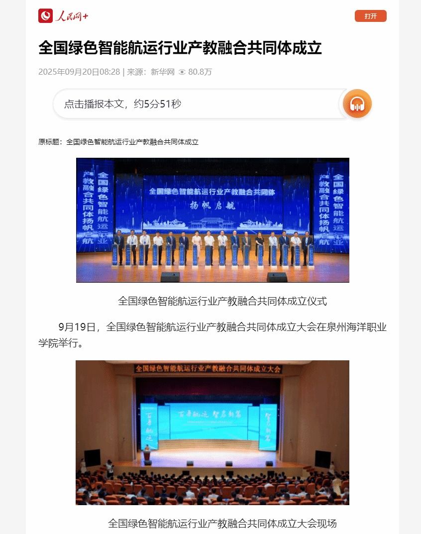 【中国新闻网】全国绿色智能航运行业产教融合共同体在闽成立
