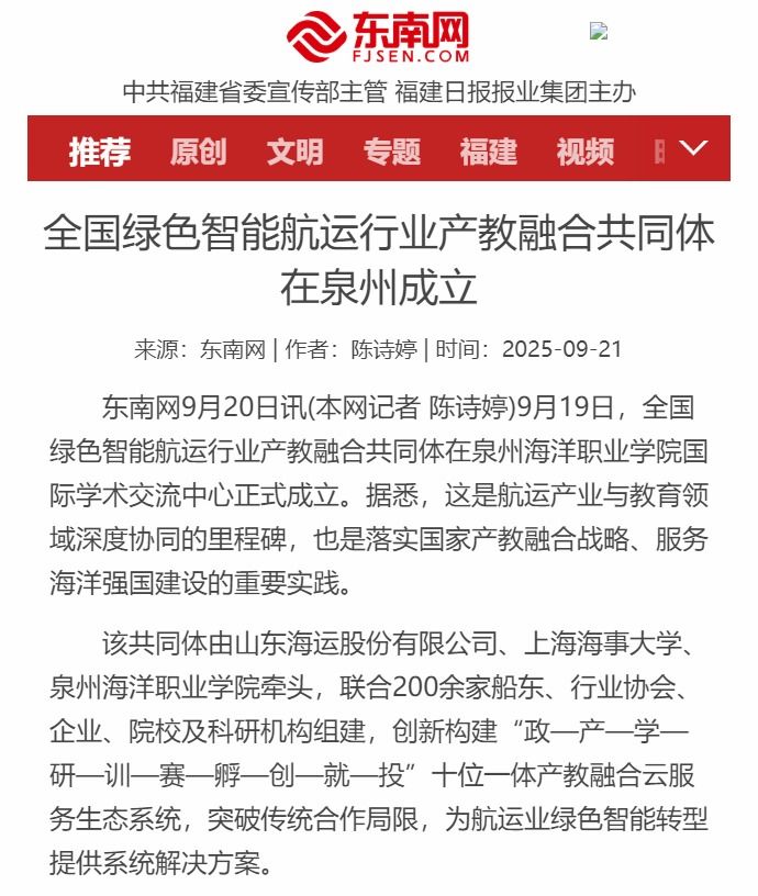 【东南网】全国绿色智能航运行业产教融合共同体在泉州成立
