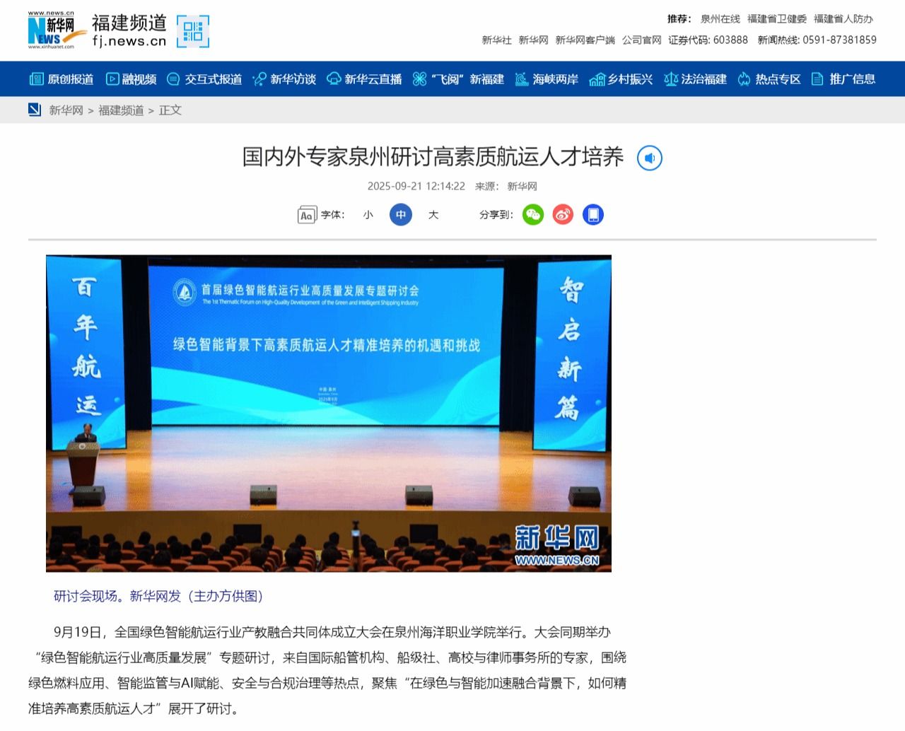 【新华网】国内外专家泉州研讨高素质航运人才培养