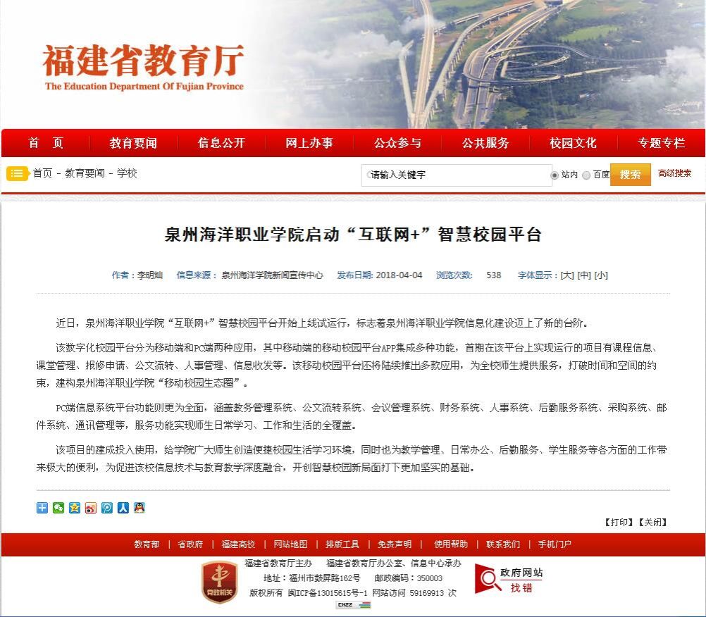 点击链接,跳转至新闻视频地址:http://www.sstv.cn/index.php?option=com_content&id=99298 以下文稿内容来源于石狮电视台4月17日《民生报你知》新闻节目视频。 一直以来,泉州海洋职业学院大力推进信息化建...