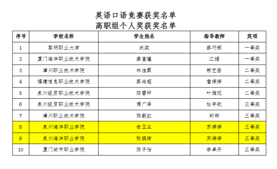 新闻中心讯(教务处 黄智雄供稿 党委宣传部报道)近日,福建省教育厅、福建省人力资源和社会保障厅、平潭综合实验区管委公布“第八届海峡两岸大学生职业技能大赛”活动评选结果。我校通识教育学院苏婷婷老师带领21级...