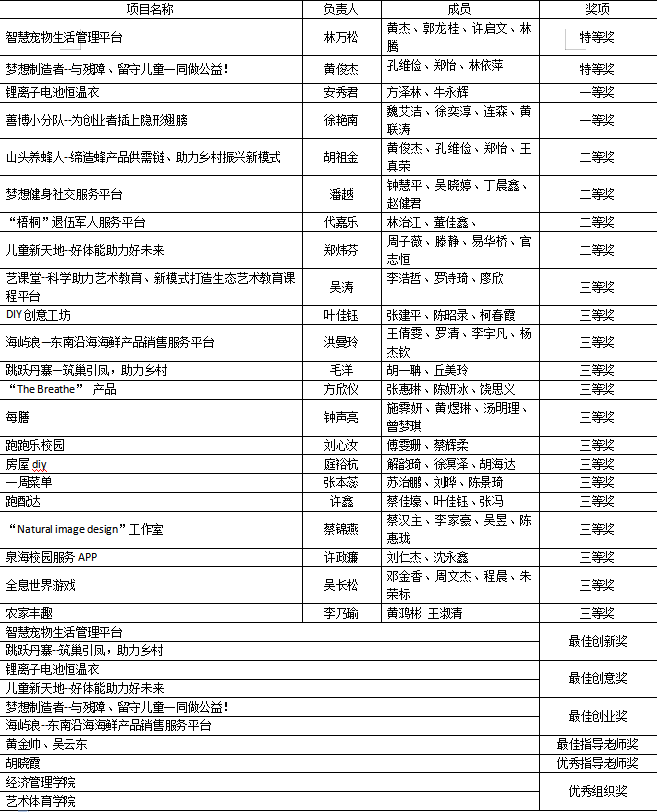 新闻中心讯(对外合作部 郑天明供稿 党委宣传部报道)新创业校赛启动仪式暨三创赛牧亦扬杯校赛颁奖典礼。牧亦扬投资有限公司总经理杨豪、助理颜淘,校领导杨雄、张超,董事会助理蔡永鸿、学生工作与发展部部长苏良城...