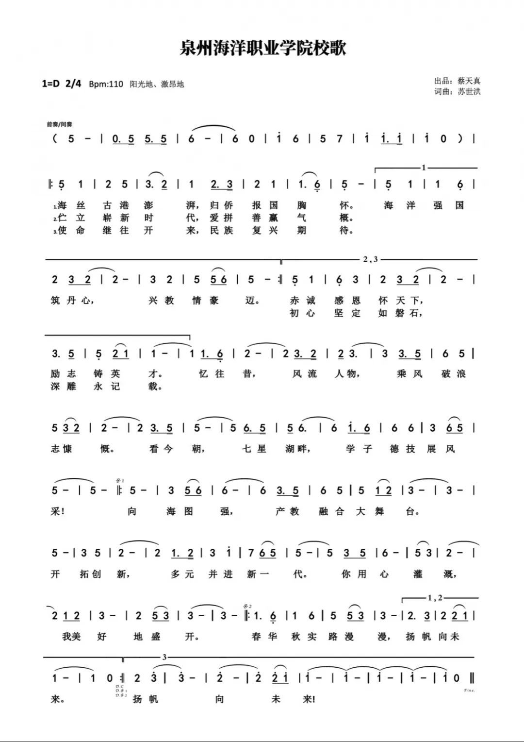 “伫立崭新时代,爱拼善赢气概” “赤诚感恩怀天下,励志铸英才” …… 泉海人有了自己的校歌 此后无论我们身处何方 每当 诵出熟悉的歌词 唱起明快的曲调 都能想起母校、校训和泉海人的使命 ...