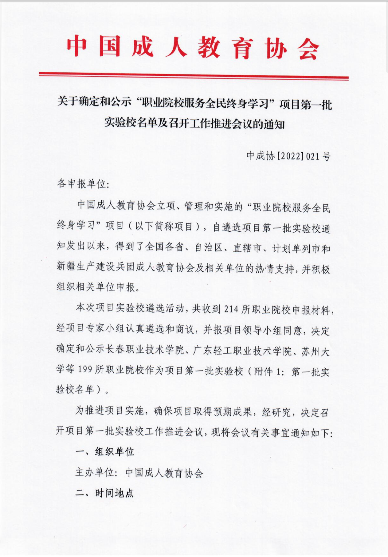新闻中心讯(党委宣传部报道)日前,中国成人教育协会发布《关于确定和公示“职业院校服务全民终身学习”项目第一批实验校名单及召开工作推进会议的通知》(中成协【2022】021号),公布全国“职业院校服务全民终身学...