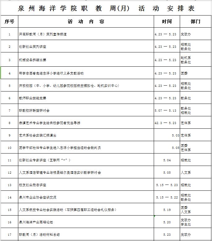 新闻中心讯(党政办 李明灿 编辑)为弘扬“劳动光荣、技能宝贵、创造伟大”的时代风尚和“精益求精、踏实务实”的工匠精神,展示职教风采,用更好的职教成果迎接党的十九大的胜利召开。在全国第三届职业教育周活动期...