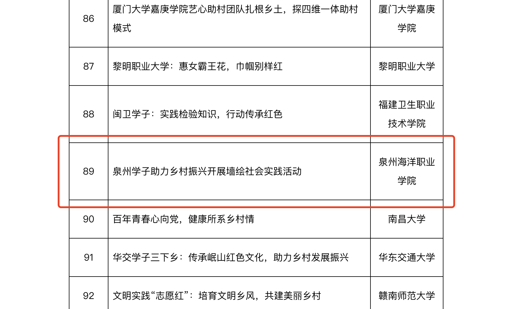 (新闻中心讯 信息工程学院吴云东供稿 校党委宣传部报道)近日,由教育部“中国大学生在线”举办的“大我青春”2022暑期社会实践成果征集展示活动公布了评选结果。泉州海洋职业学院作品《泉州学子助力乡村振兴开展墙...