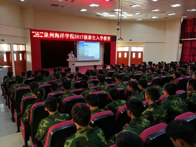 2017年9月4日,泉州海洋职业学院为期十天的2017级新生军训正式开始,伴随军训的新生入学教育系列活动也于下午3:00在学院2204报告厅正式开启。 新生入学教育第一讲为学院简介,主讲嘉宾为学院副院长赵山辉。赵山辉副...