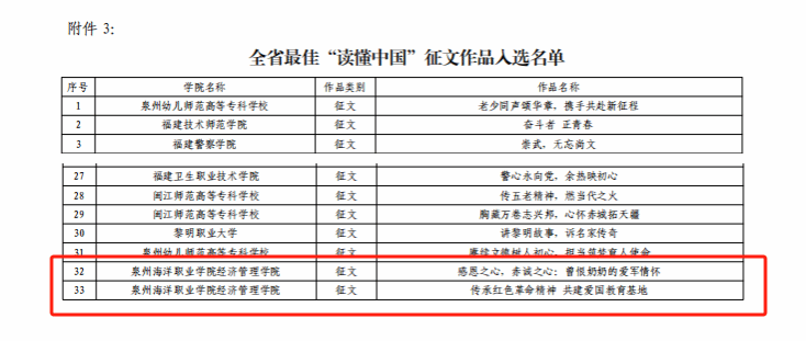 (新闻中心讯 校关工委供稿 校党委宣传部报道)近日,福建省教育系统关工委公布了2023年我省高校参加“读懂中国”活动入选作品名单。我校关工委荣获全省“优秀组织奖”,经济管理学院选送的《感恩之心,赤诚之心:曾...