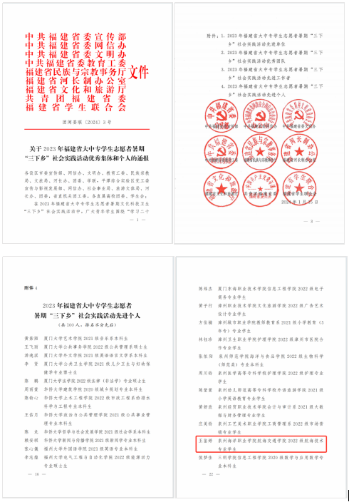 (新闻中心讯 校团委屈先锋供稿 校党委宣传部报道)近日,中共福建省委宣传部、共青团福建省委等部门联合发布了《关于表彰2023年福建省大中专学生志愿者暑期“三下乡”社会实践活动优秀集体和个人的通报》以及《关于...