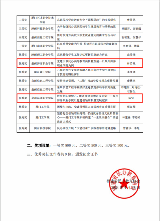 (新闻中心讯 党委学生工作部 林淑婷供稿 校党委宣传部报道)近日,福建省民办教育协会主办的“2023年高专委主题征文活动”评选结果出炉。我校航海交通学院洪达铭老师的《关于党建引领下如何高质量开展民办高校辅导员...