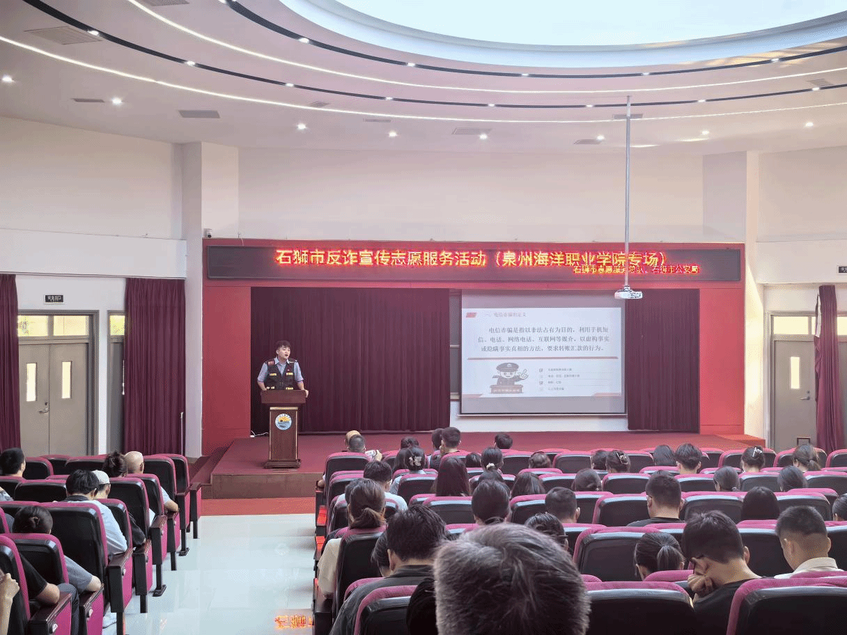 (新闻中心讯 党委保卫部林文涛供稿 校党委宣传部报道)为进一步加强校园教职工反诈宣传教育,6月24日,泉州海洋职业学院针对教职工开展反诈宣传讲座,特邀石狮市公安局反诈中心警官黄泽雄担任主讲。校党委副书记、副校长李明灿,校内各单位负责人、教职工代表,各二级学院副书记、辅导员,以及学校大学生反诈宣传志愿服务队成员等250余人聆听讲座。讲座中,黄泽雄警官通过丰富的案例、生动的语言,深入剖析了网络诈骗、电信诈骗、金融诈骗、...
